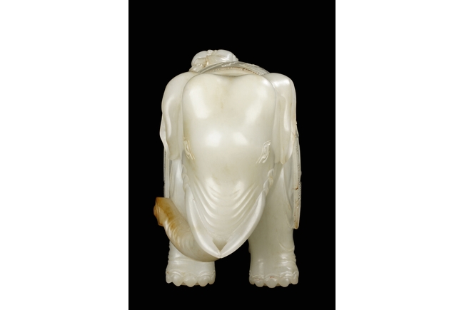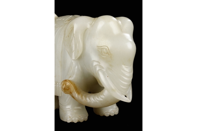 此白玉雕太平有象,用料大方,雕工精细,类似拍品请参考香港佳士得2012年11月拍品号2963 Compare to a similar but smaller white jade elephant carving, sold in Christie’s Hong Kong on November 28 2012 Lot 2963 來源:美國俄勒岡州華人著名藏家遠先生提供