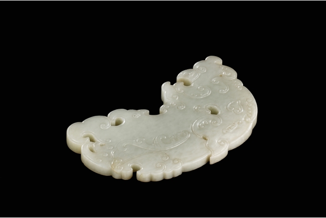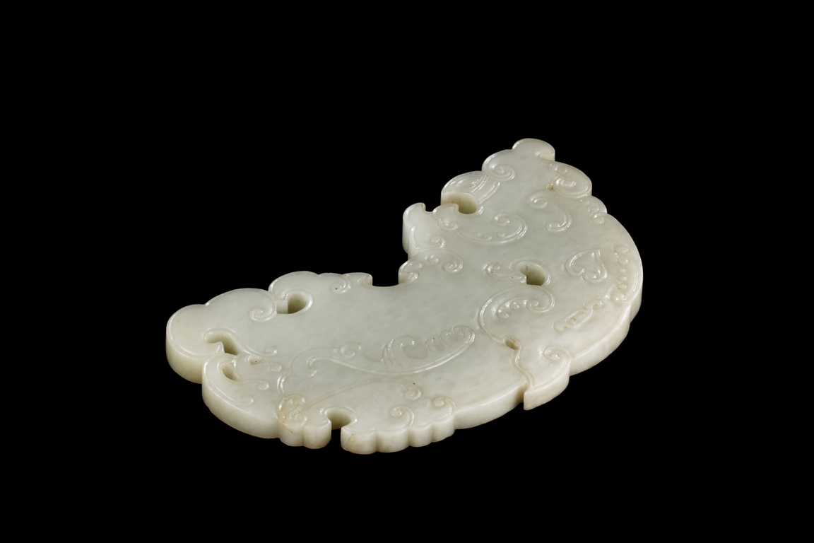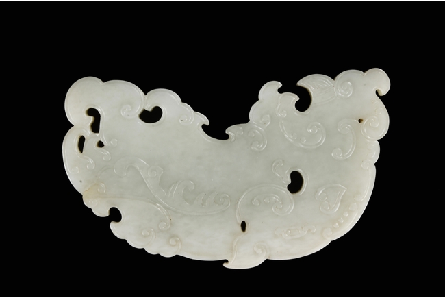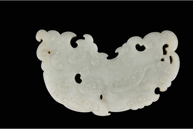 Of irregular flattened form, the pendant depicts a dragon flying amidst clouds, the stone of smooth white with translucency Qing Dynasty period.