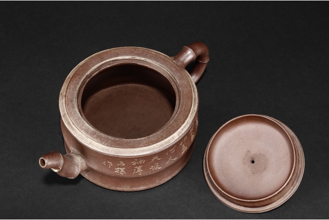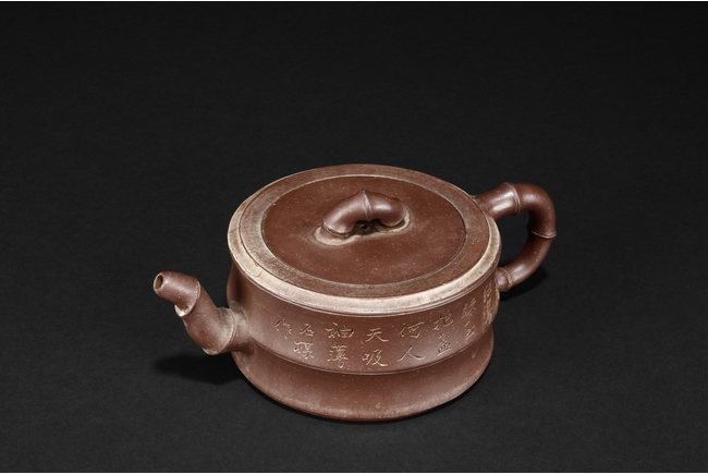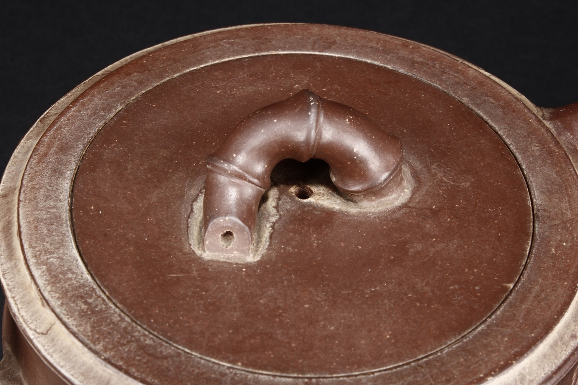 通體圓竹,三彎流,竹節鈕,竹節執把。此壺包漿自然,古意盎然。 Shi Mei was a famous artist and calligrapher during Qing Dynasty Jiaqing and Daoguang period, and he was known for decorating ornaments such as Yixing zisha teapots. 石楳為嘉、道年間文人畫家,在傳器裝飾書畫上格調高雅,金石韻味濃厚。
