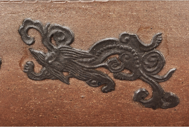 此碗口沿處飾滿一圈迴文,其下佈滿一圈螭龍紋花卉纏蓮,再一圈則貼上小螭龍,再下為圓圈足,碗底及碗內則施釉,胎質細膩,胎器週正,氣派非凡。此碗包漿飽滿,厚實,應為清中期的產物,保存完好實屬不易,值得收藏。