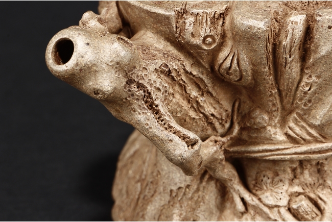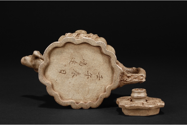 Chen Mingyuan was a Yixing teapot maker during Qing Dynasty Kangxi and Yongzheng period, with multiple art names, including “He Feng”, “Shixia Shanren”, and “Hu Yin“. He handcrafted many different types of Yixing teapots and accessories, and the signature mark on this teapot has similar style to Jin and Tang Dynasty periods. 陳鳴遠,康熙、雍正年間人,號鶴峰,一號石霞山人,又號壺隱,手製茶具雅玩不下數十種,其款字有晉唐風格。