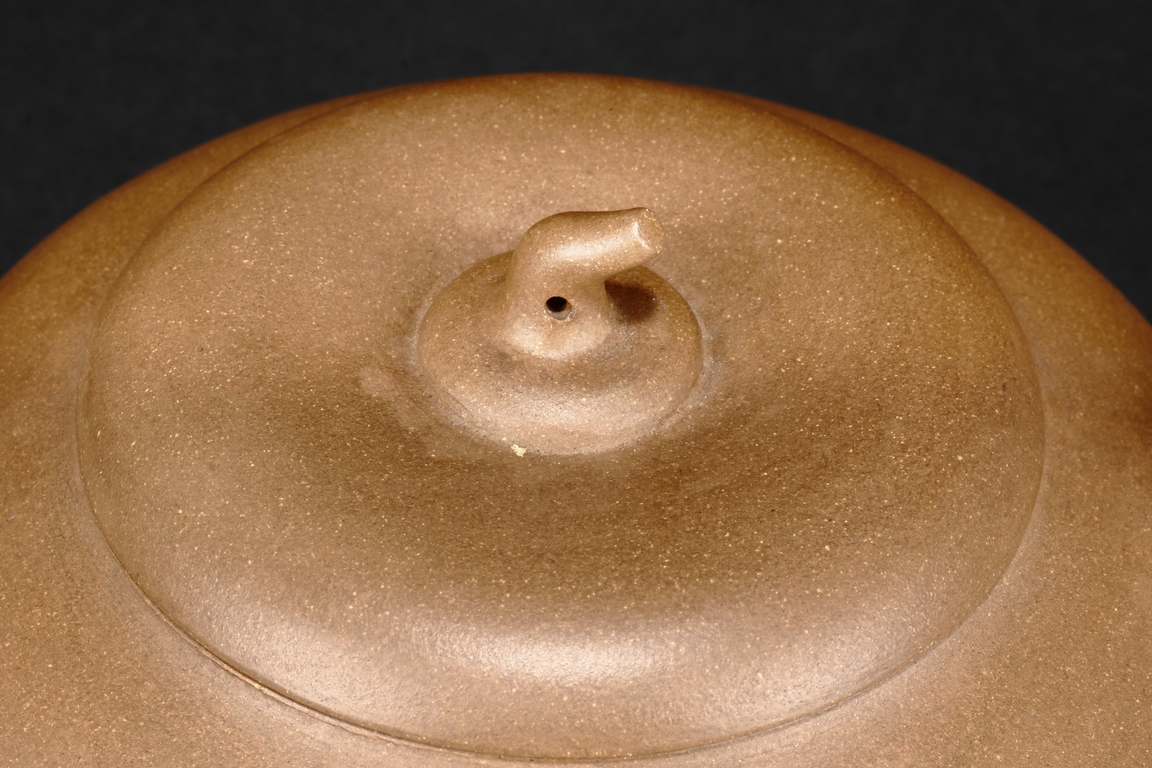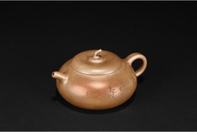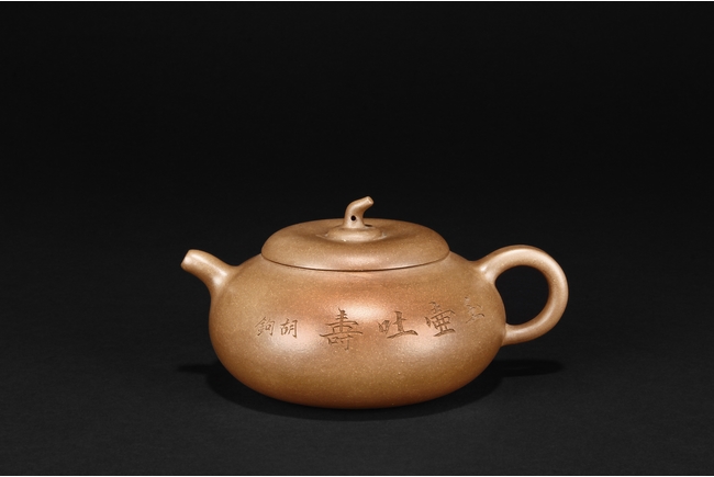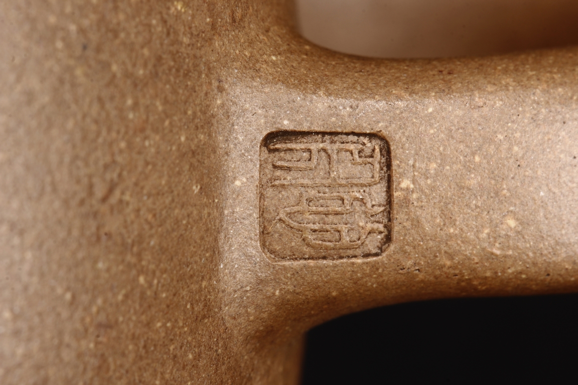 圓鼓腹,腹上胡駒刻有玉壺吐壽,把款心舟小方印。 He Xinzhou was one of the founders of Zhening Yuchengyao kiln. 何心舟,浙寧玉成窯始祖之一。