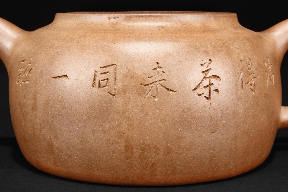 沽得茶來同一醉 雪老居士。此壺可嗅出王東石的一貫味道。 Wang Dongshi and He Xinzhou were both founders of Zhening Yuchengyao qiln. 王東石與何心舟均為哲寧玉成窯始祖之一。