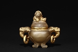 清 瑪瑙雕鎏金雙獅耳香爐