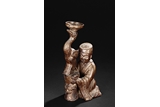 A CERAMIC "MAN AND CRANE" CANDLE HOLDER