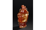A RED AGATE VASE WITH COVER
