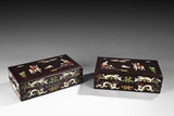 A PAIR OF APPLIQUE HARDWOOD BOXES