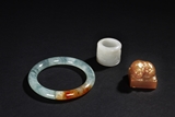 A SHOUSHAN STONE SEAL, A JADEITE BANGLE, AND A WHITE JADE ARCHER'S THUMB RING