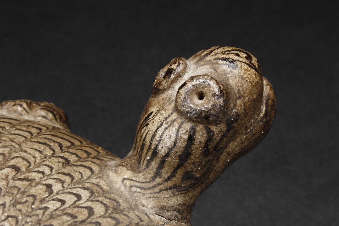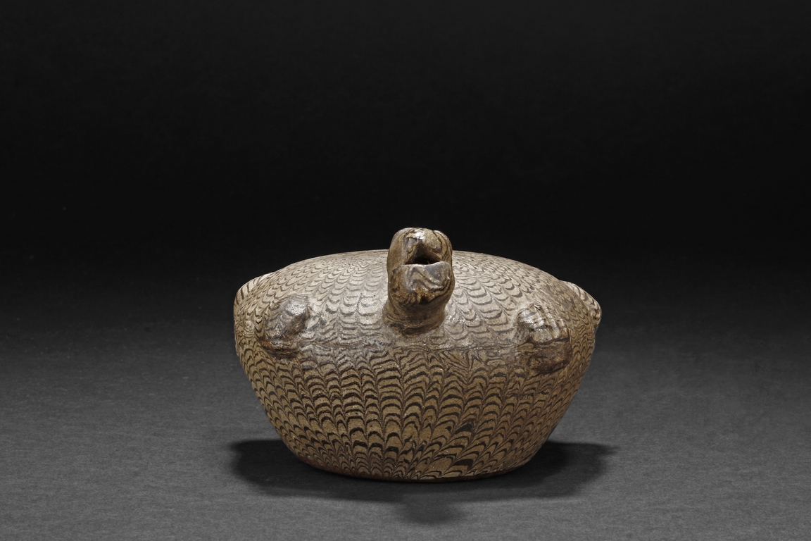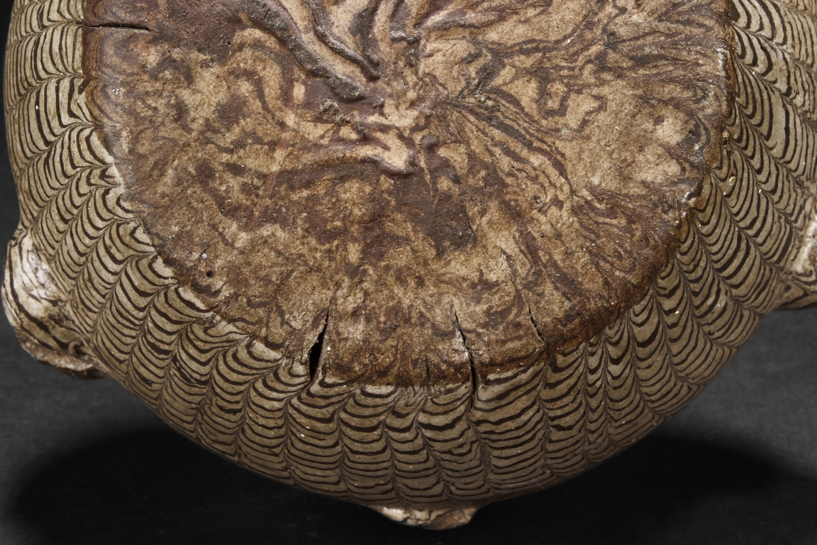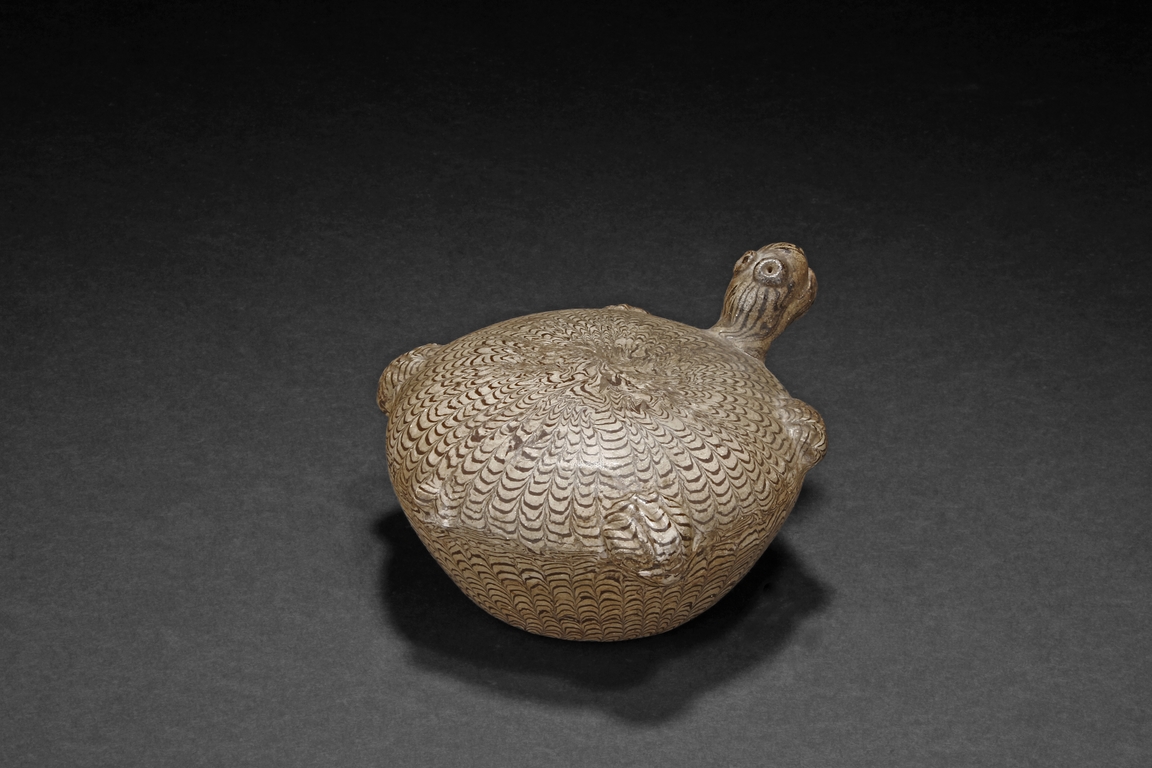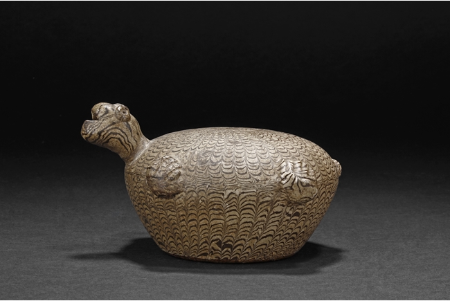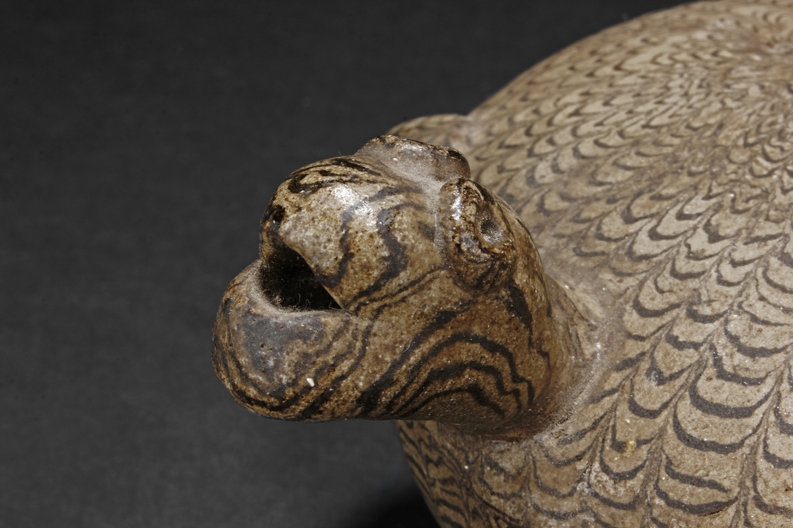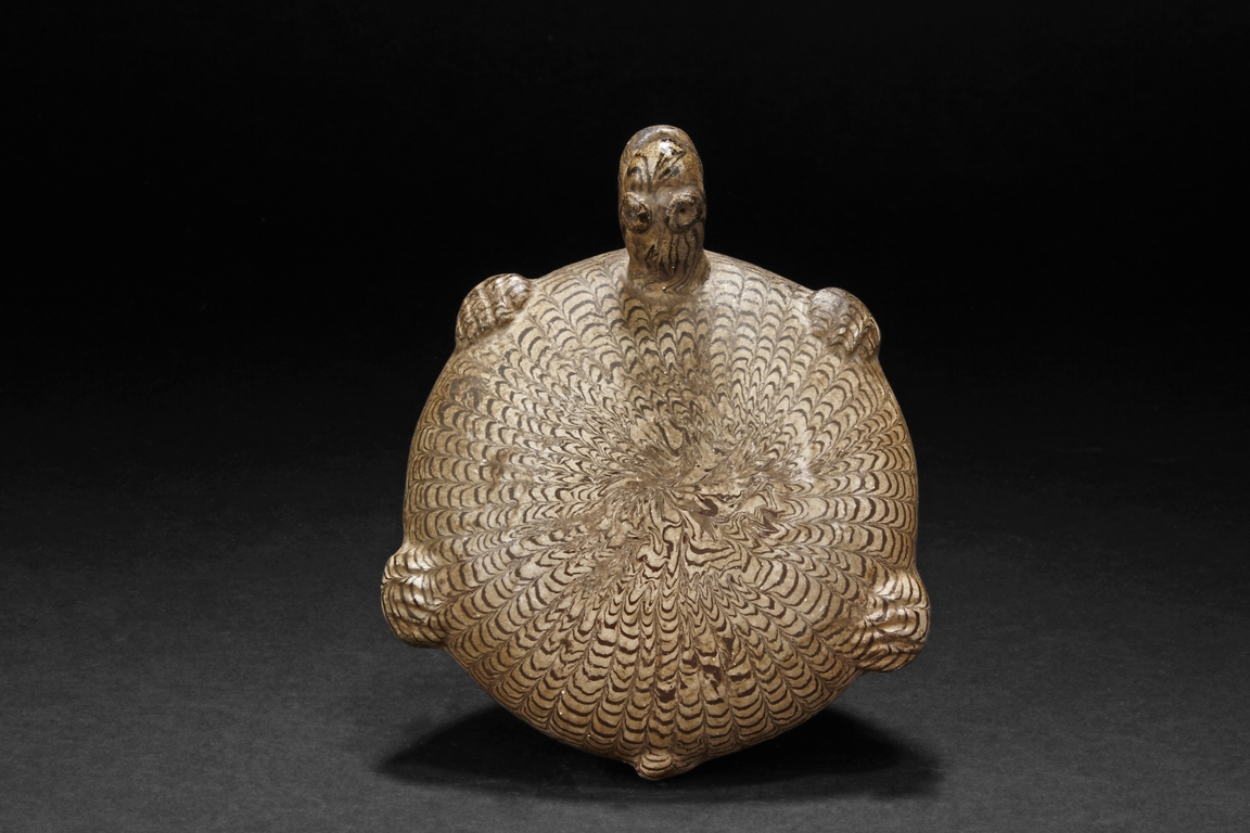 The porcelain water drip in the form of a turtle, the body and shell of water drip patterns, the four short legs extending out from the sides, with the head raised high and open mouth. Ming dynasty period.