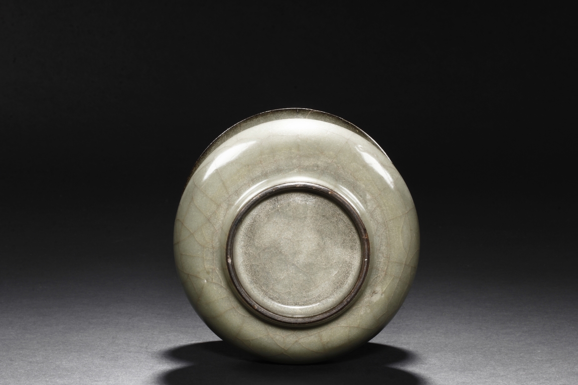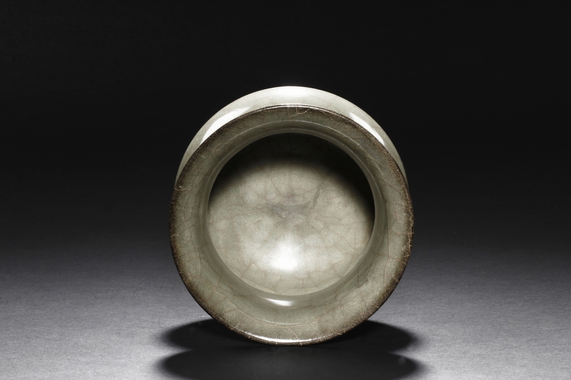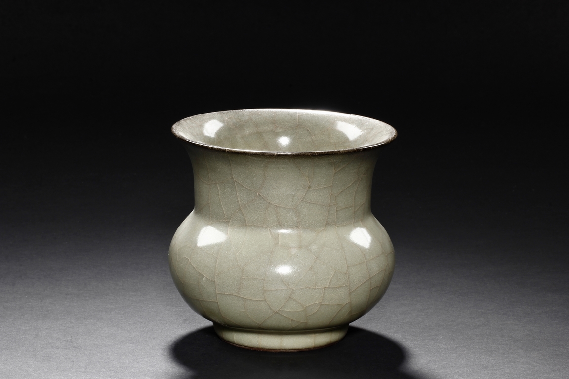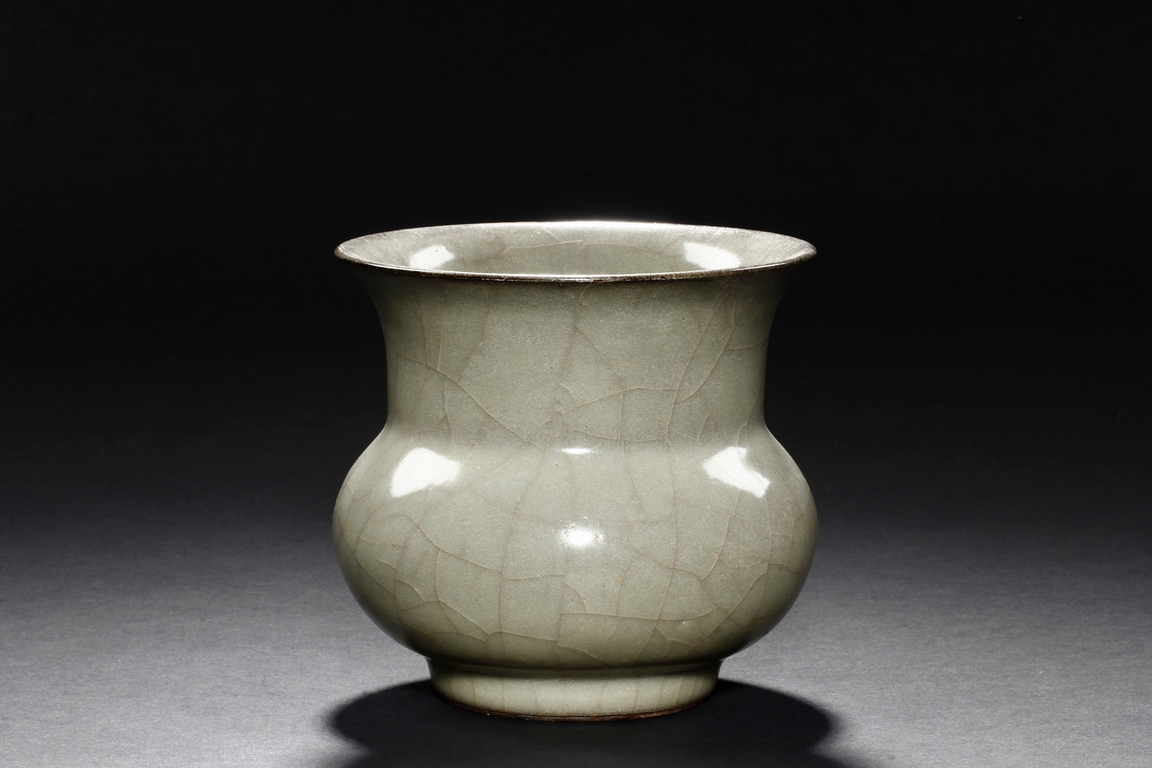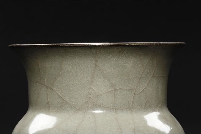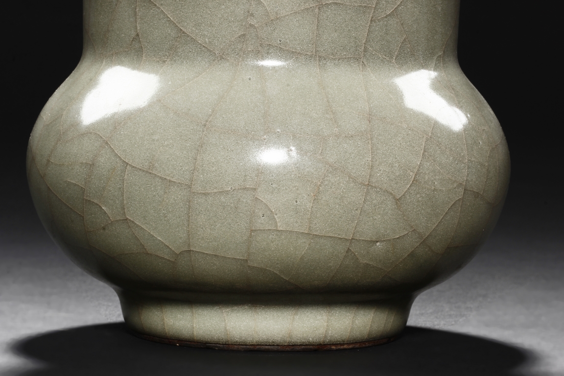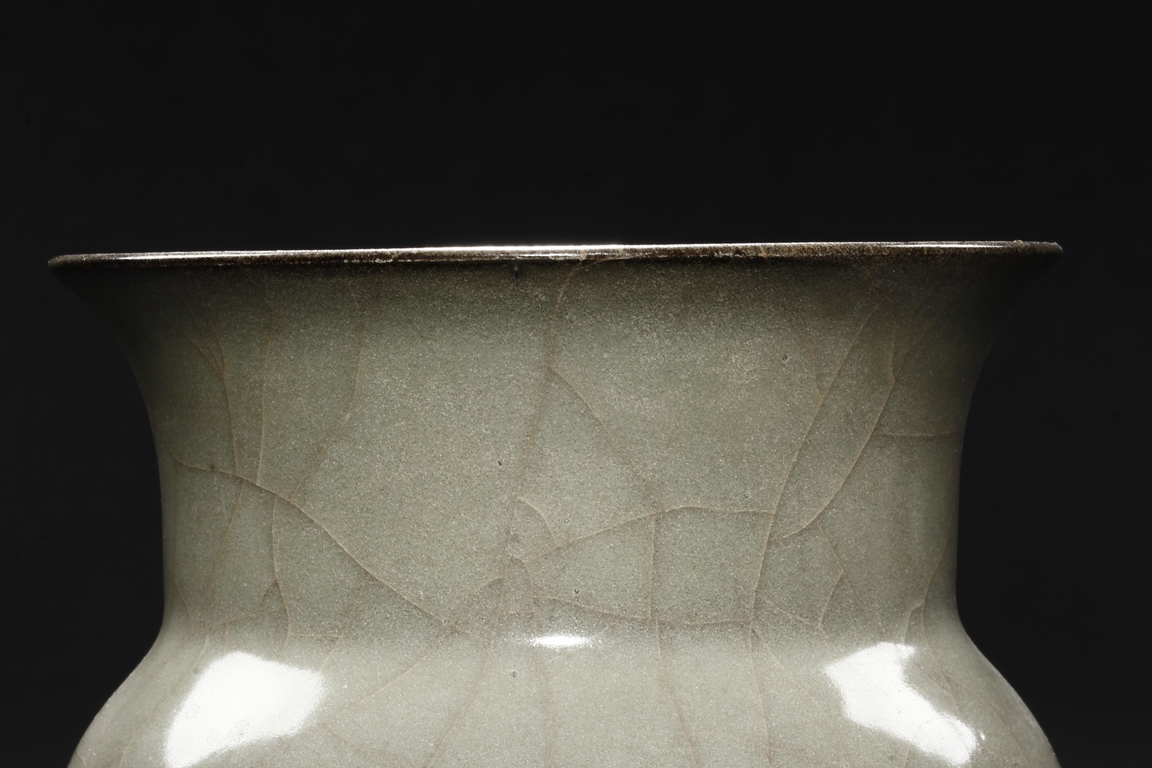 The Ge-type vessel is of baluster form, the compressed ovoid body supported by a straight ring foot, the wide and straight neck leads to flared rim, overall glazed in celadon with crackle patterns. Qing Dynasty period.