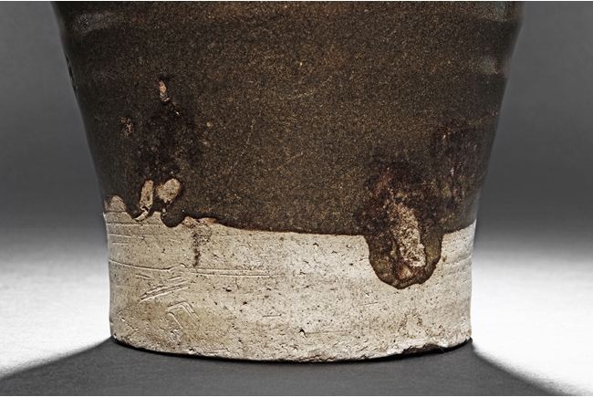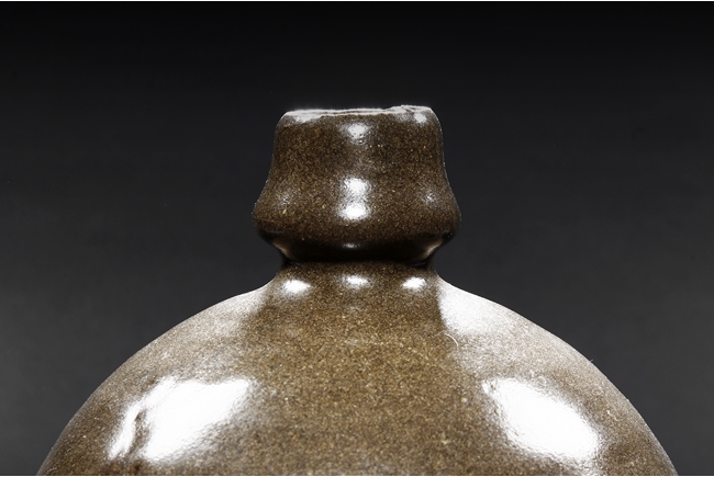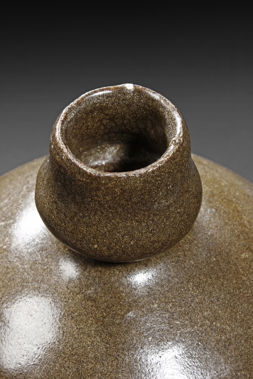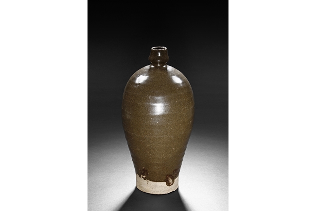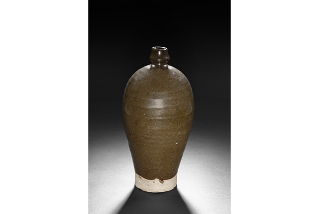 The Jizhou kiln vase is of elegant bulbous form, with wide shoulder and smoothly tapered downwards to slightly splayed foot, the vase glazed overall in tea-dust brown, the bottom unglazed.