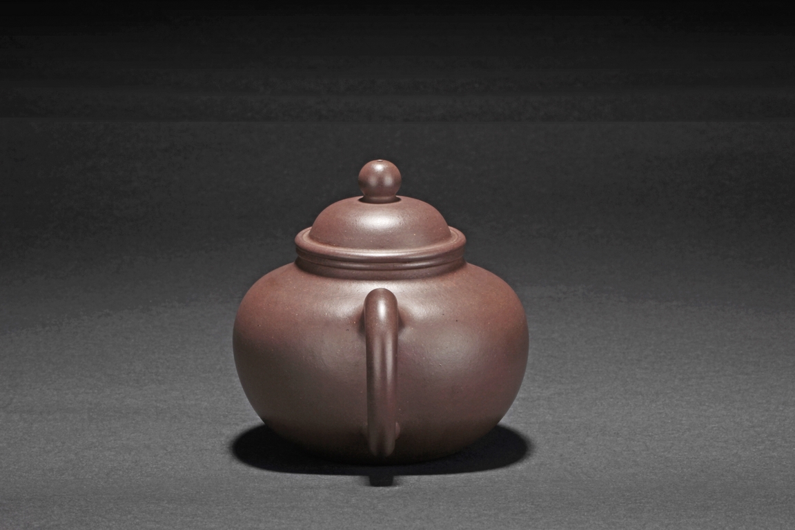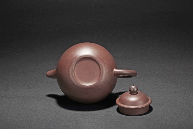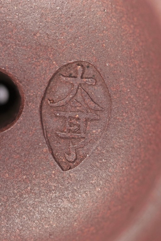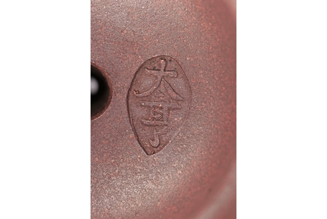 此壺壺身、壺蓋、鈕宛如三球層疊,渾如天成,口沿緊密,周整,符合邵大亨(1796-1850年)多以光素器見長之,作品多簡潔莊重,蓋內典型的瓜子形"大亨"款,大亨壺在清代有"一壺千金幾不可得"之譽。