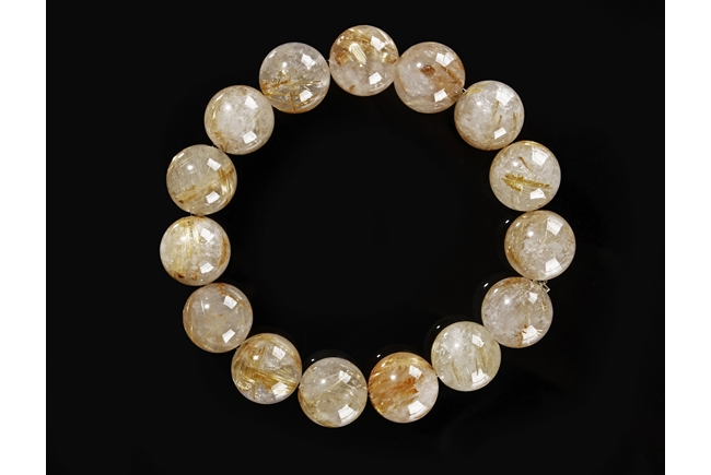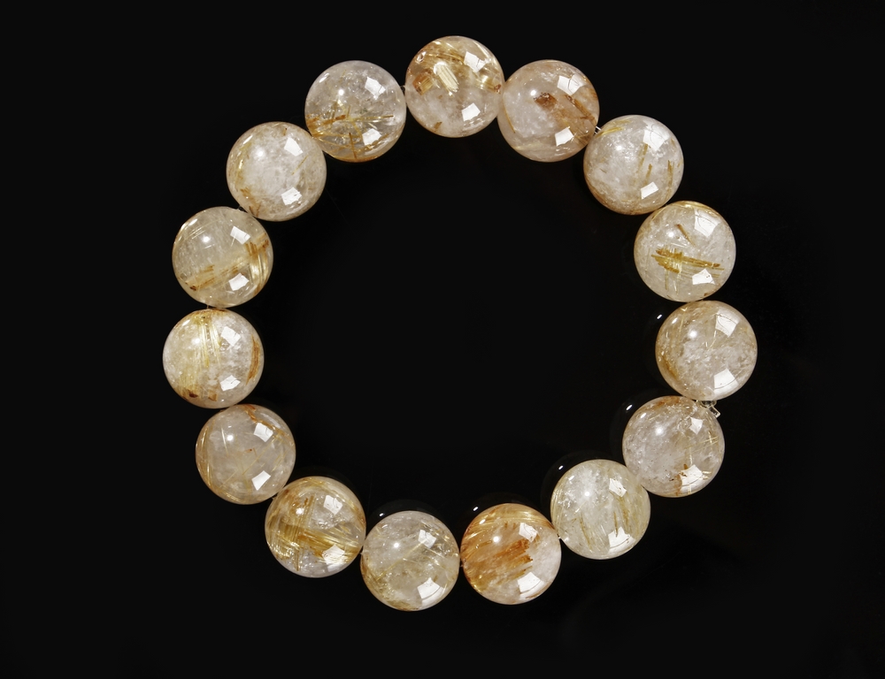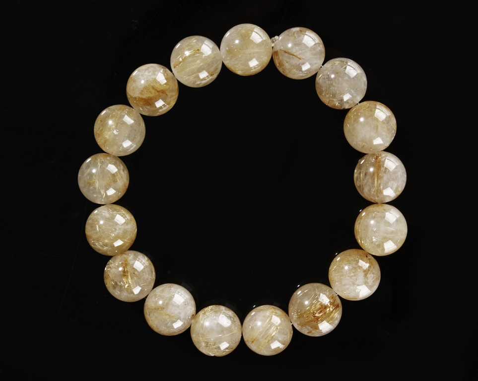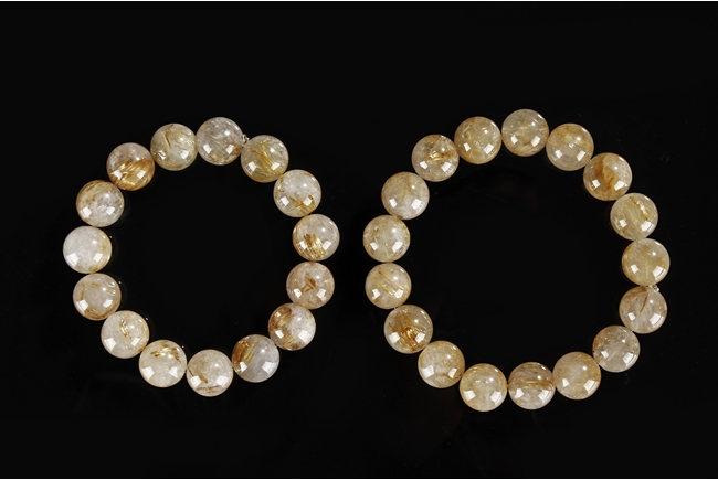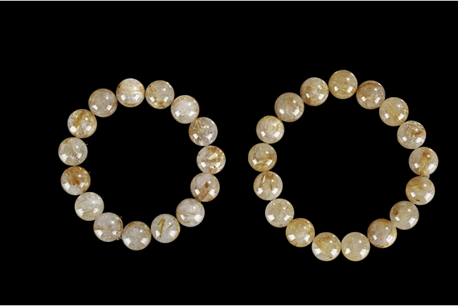 Each bracelet comprised of Brazilian translucent smoky quartz, with russet inclusions,cut and polished in the form of bead, with diameter 19 cm for one and 19.8 cm for the other one.