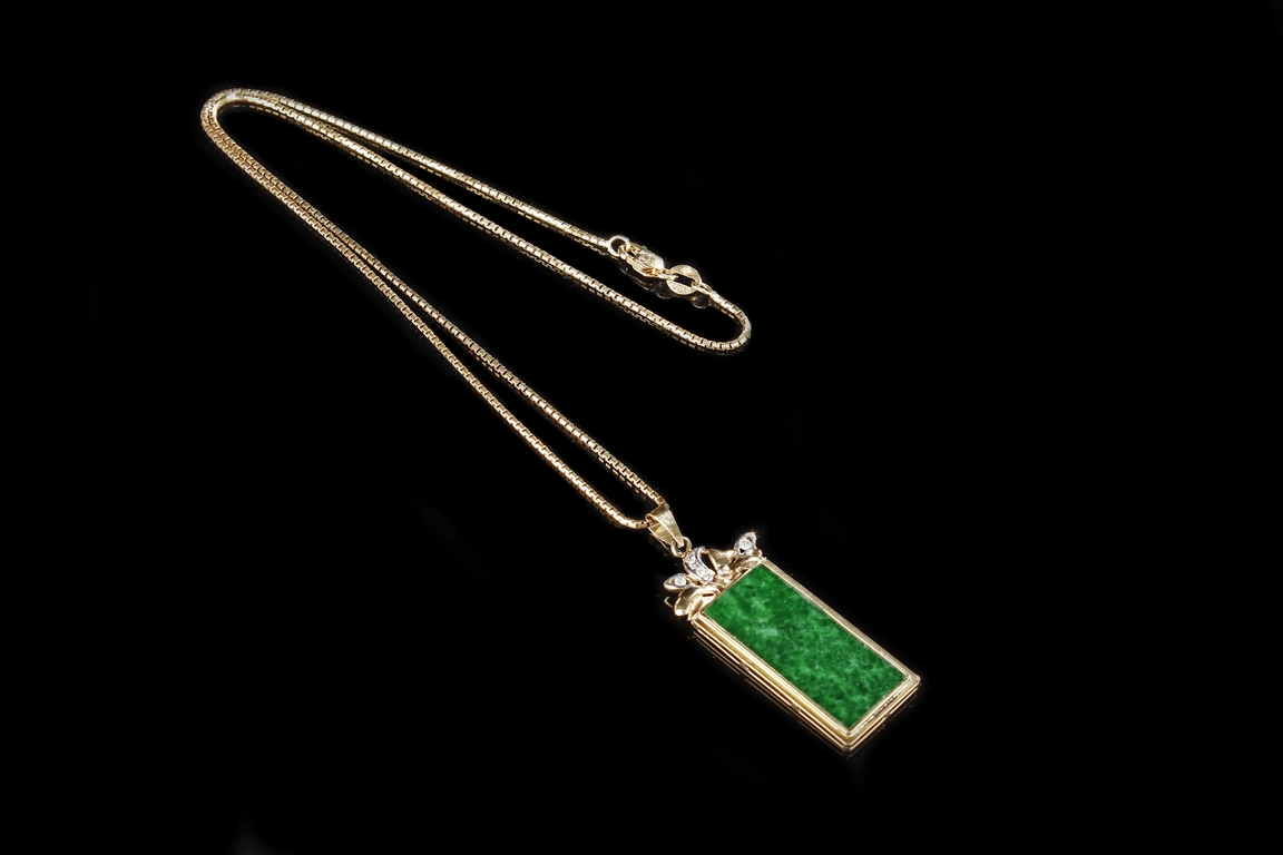 - Dimension: Jadeite: 25.30 x 11.60 mm Diamond: 0.80 ct. 18K gold