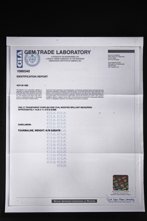 - Dimension: Stone: 14.25 x 11.12 x 6.15 mm Weight: 6.78 ct.