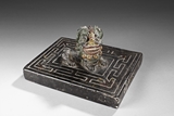 A STONE CARVED MYTHICAL BEAST PAPER-WEIGHT