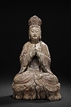 A WOOD CARVED SEATED GUANYIN BODHISATTVA
