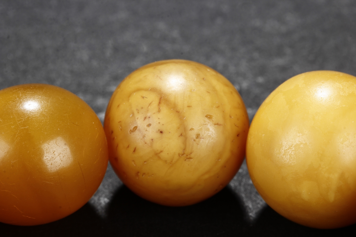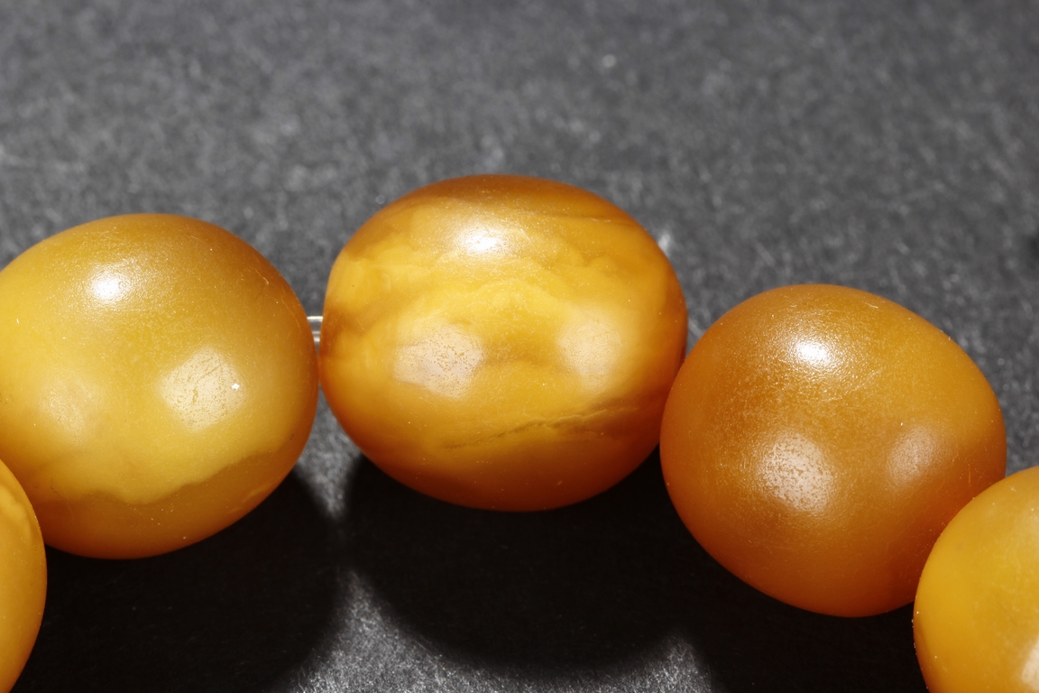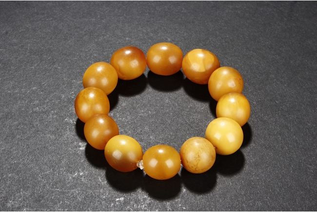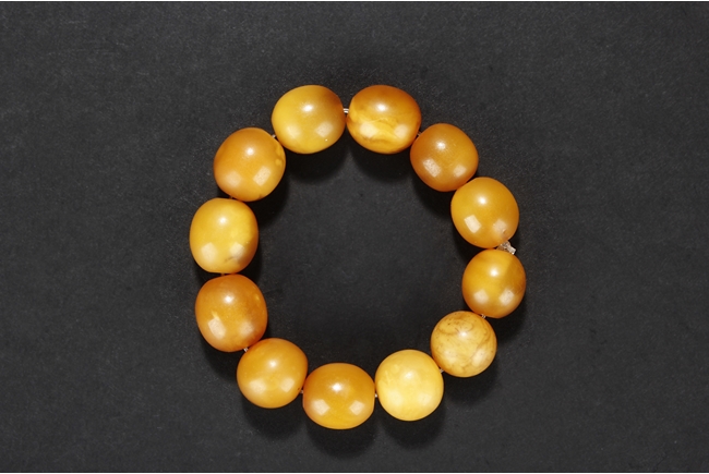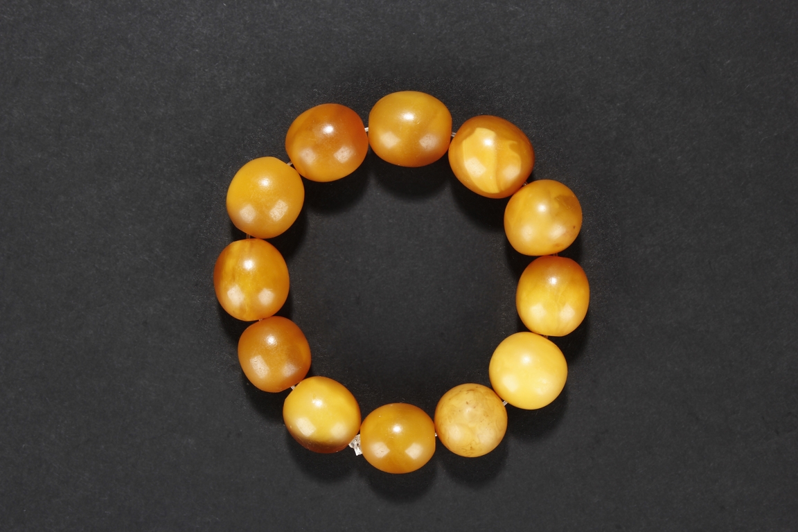 The bracelet includes twelve (12) amber beads, size ranging from 17.65mm to 19.16mm, with butterscotch and egg yolk color, with slight translucency and good patina.