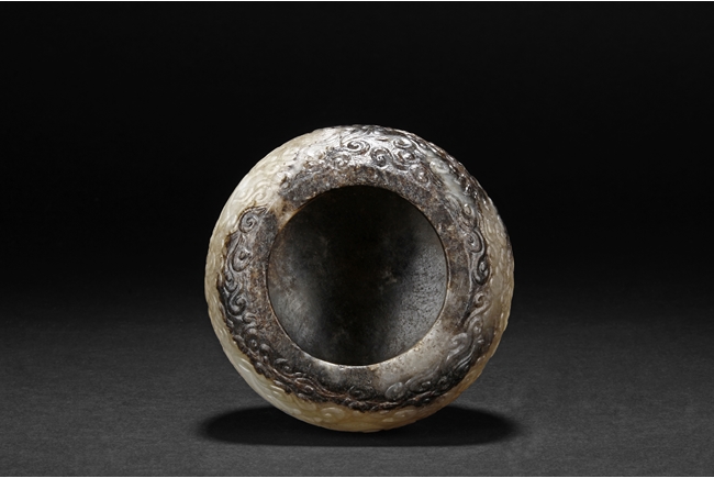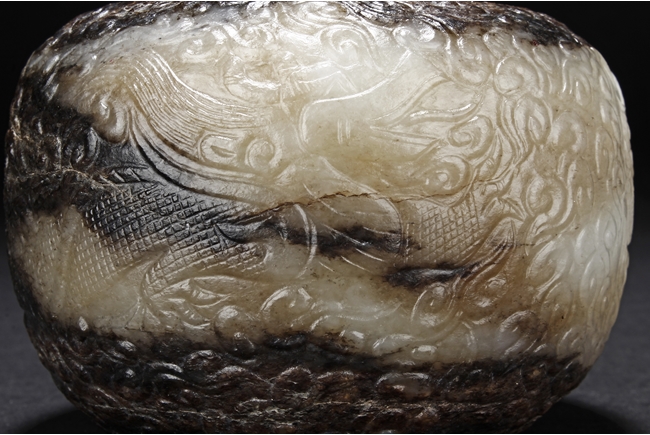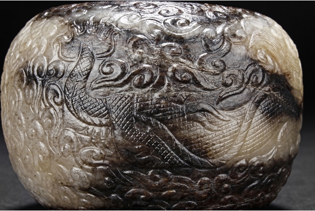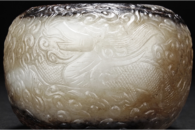 此洗包漿古潤,雕工精細,上飾一遊龍於祥雲間,非常罕見,為博物館級藏品
