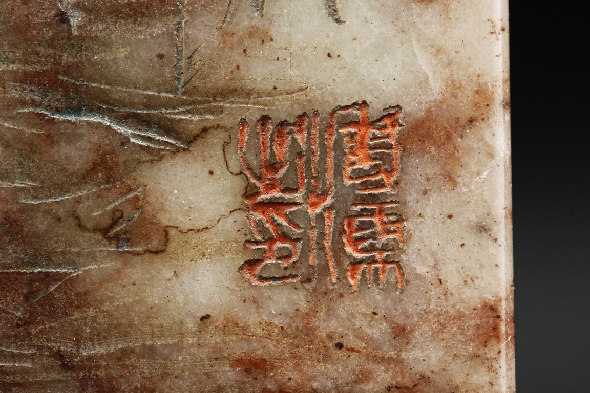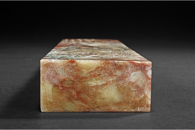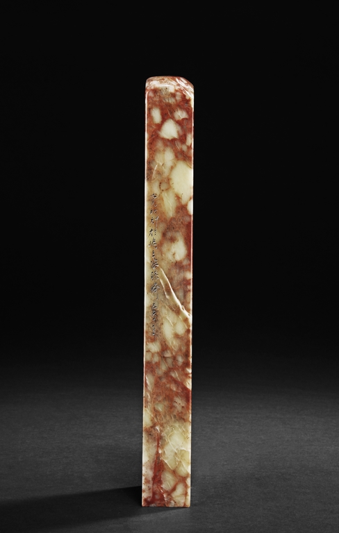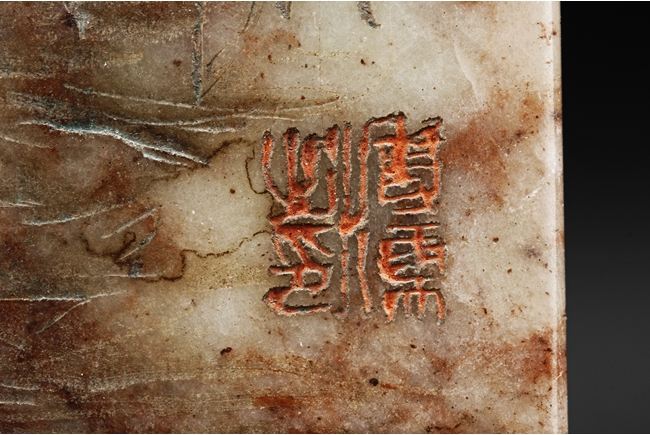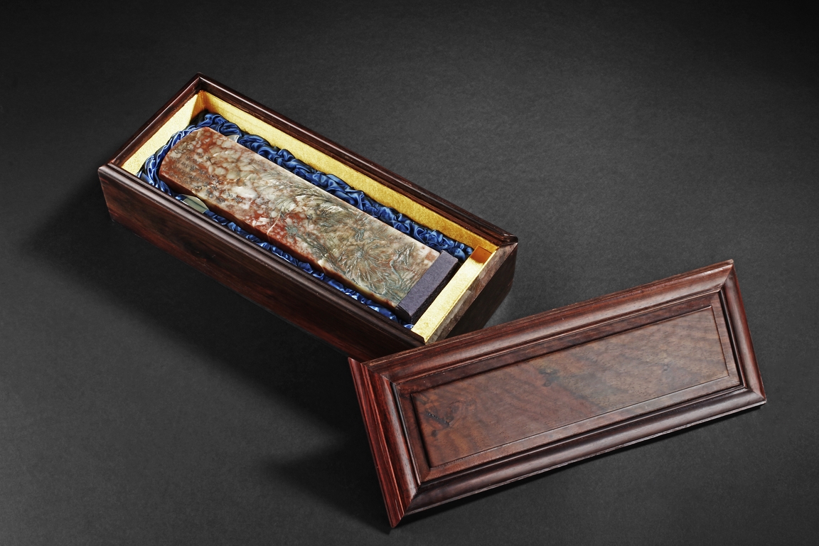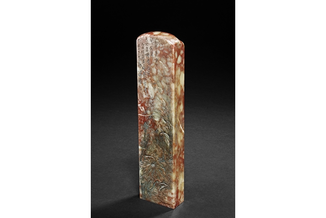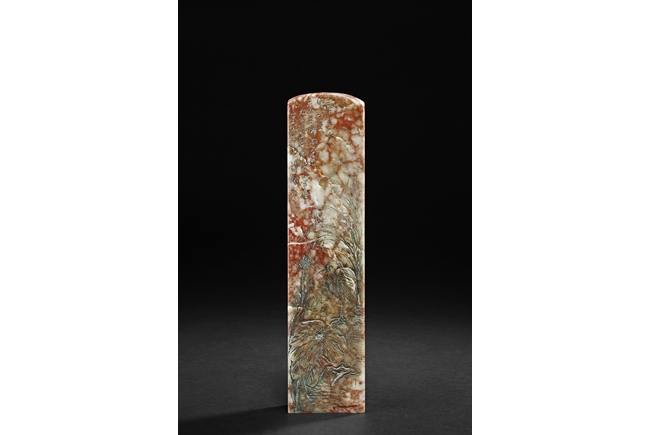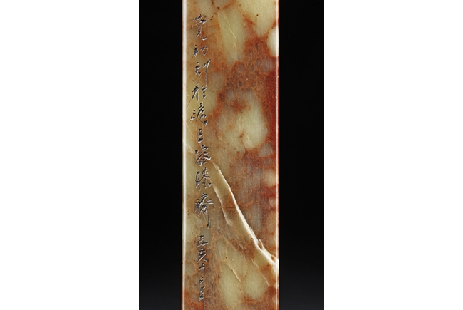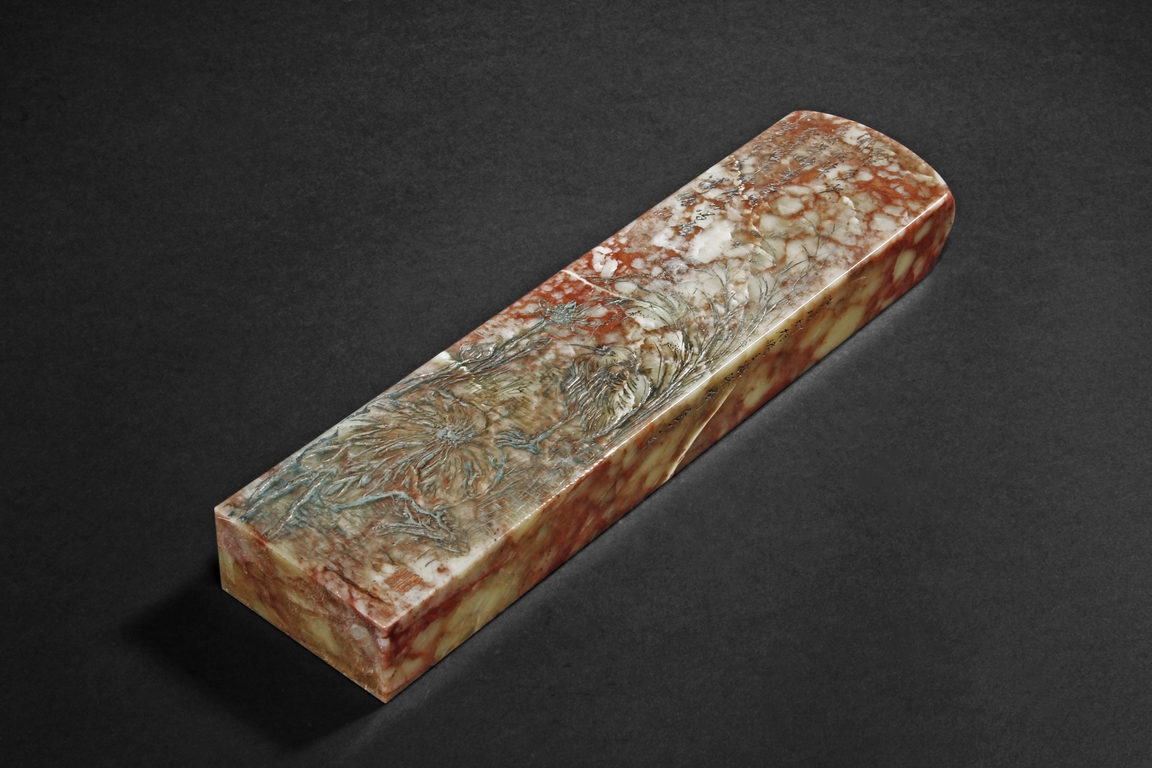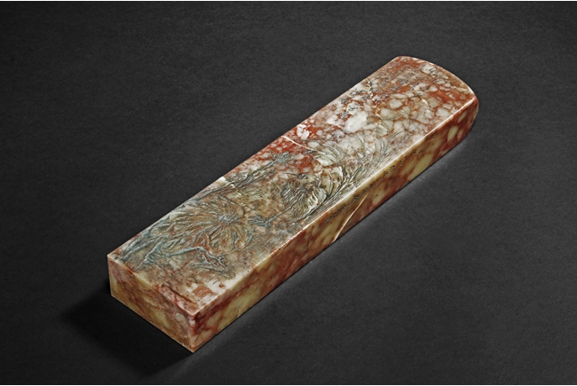 此鎮紙為溥儒先生生前極少的雕刻作品之一,所雕荷花,鷺,蘭草及詩文,栩栩如生,蒼勁有力,值得收藏