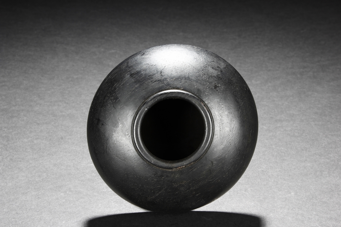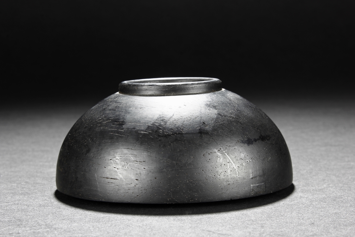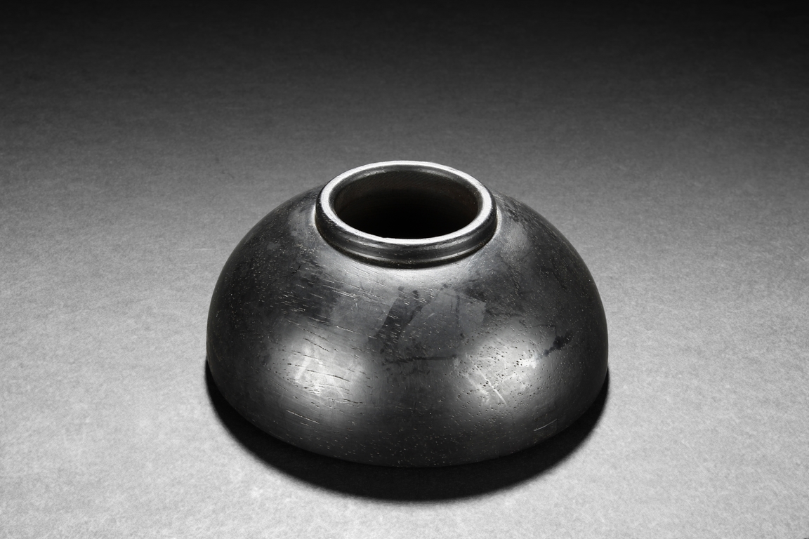 The water-pot is modelled with domed rim of circular opening, it raising from a circular foot ring, the exterior is of natural zitan wood black tone and grains throughout.