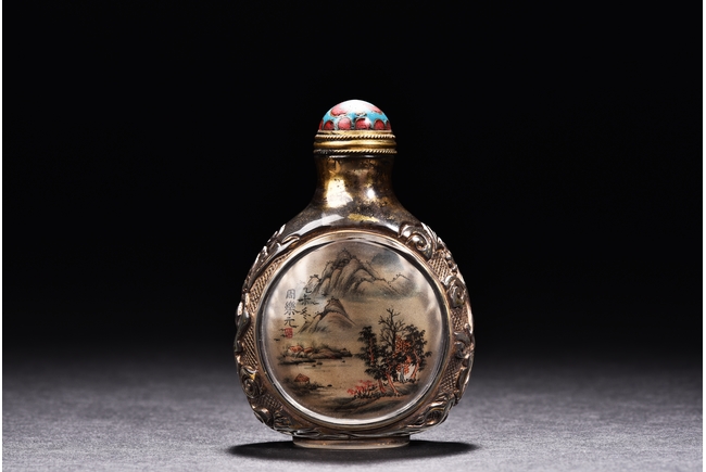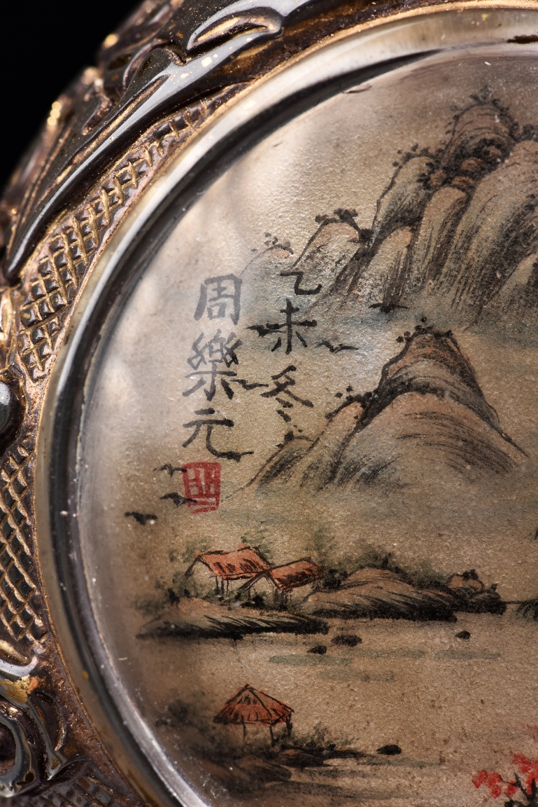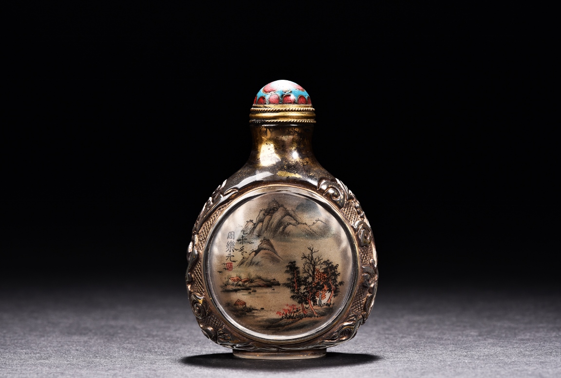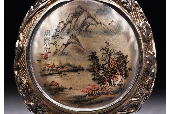 周樂元,北京人,生卒年月不詳,是內畫鼻煙壺的一代宗師。目前已知周樂元最早的內畫鼻煙壺作品創作於光緒八年(1882),而最晚的則是在光緒十九年(1893)。周樂元的內畫作品題材很廣泛、山水人物,花鳥魚蟲、書法等,無不精美,尤其擅長山水畫。 來源:紐約重要藏家提供