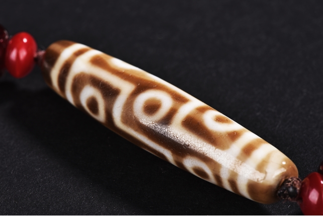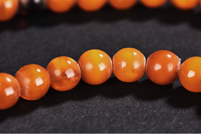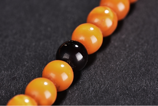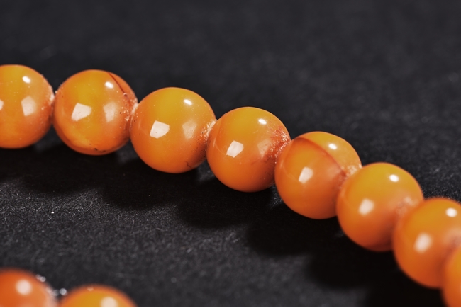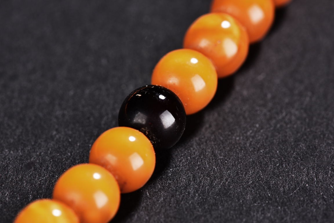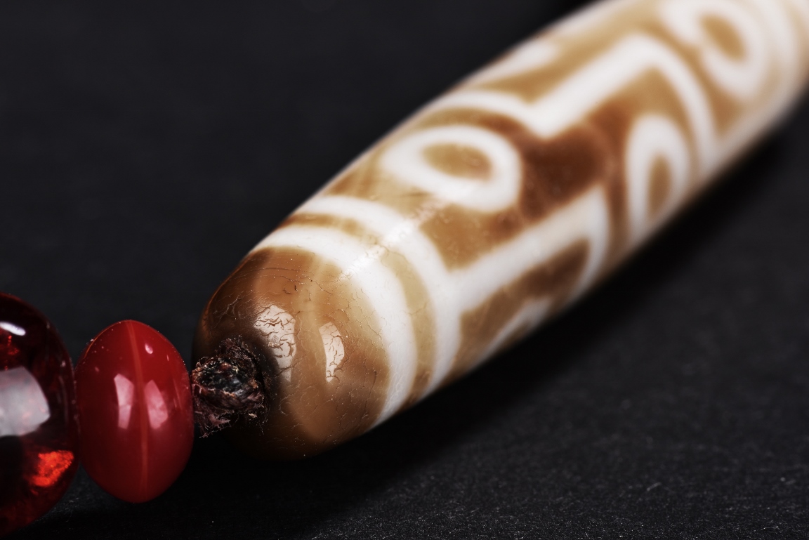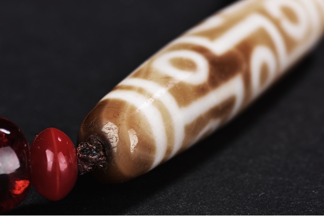 The necklace comprises of amber beads and a Dzi bead. Qing Dynasty period.