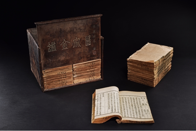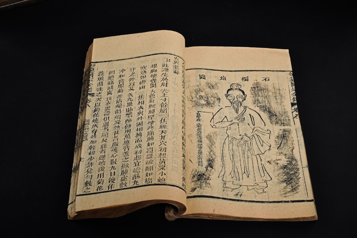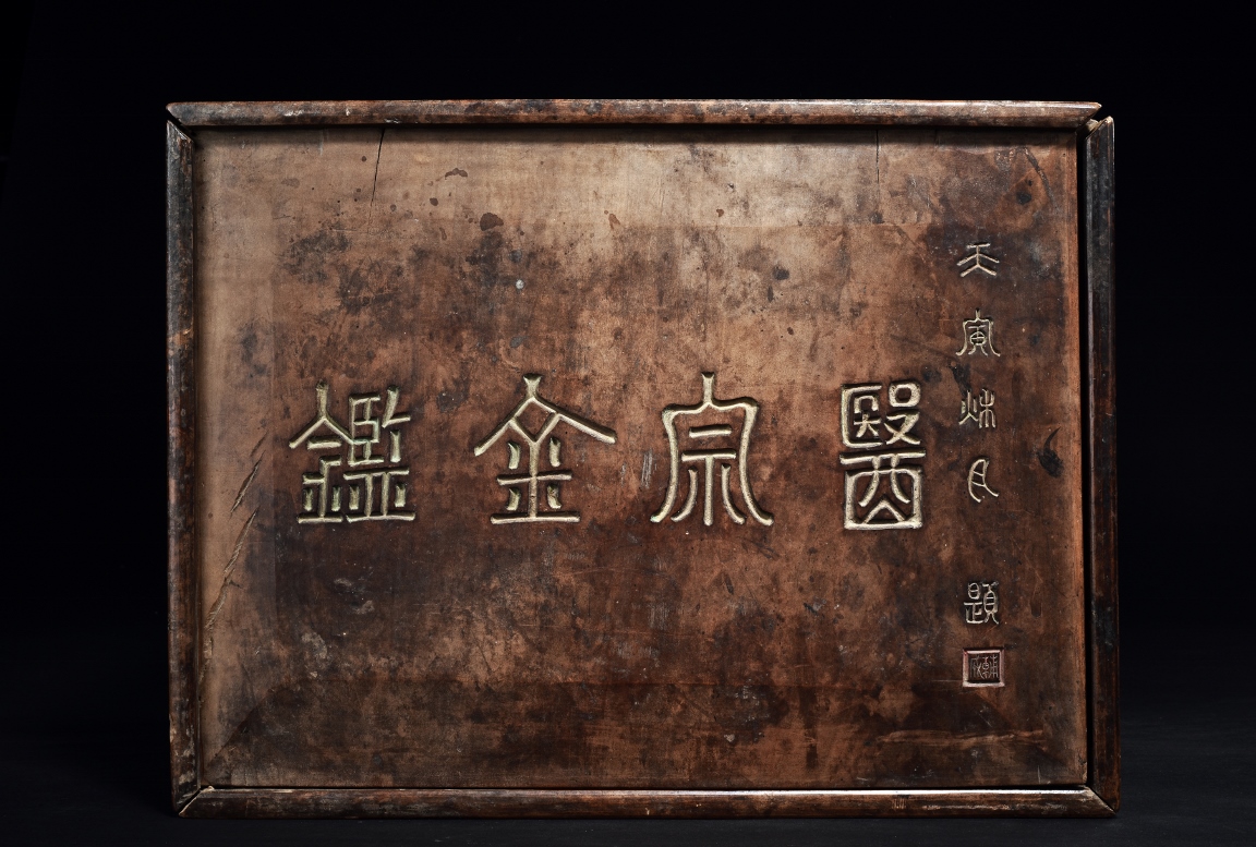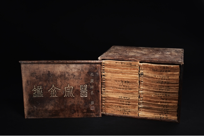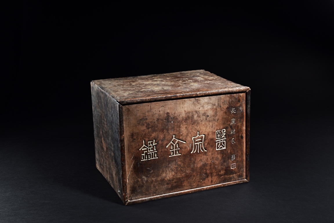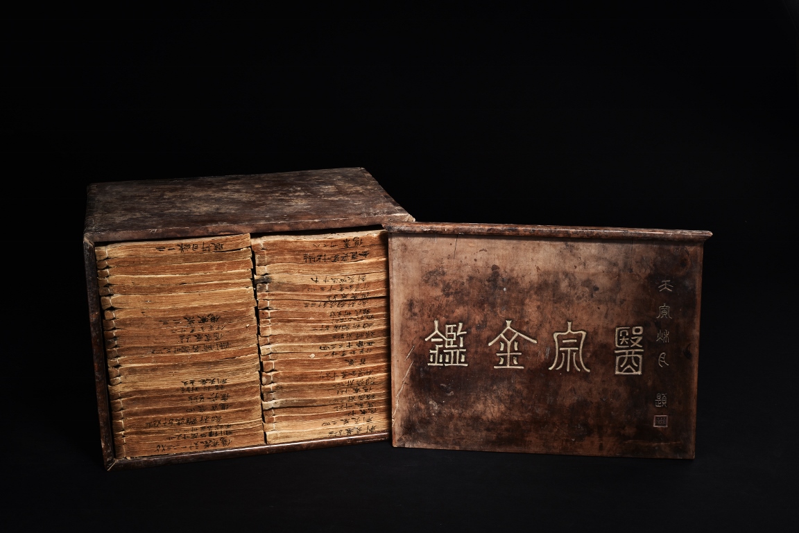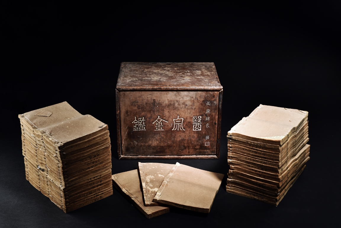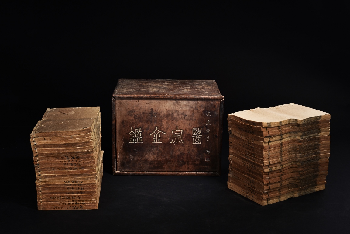 The set comprises of 43 imperial Chinese medical books, each with illustrations and descriptions. Accompanied by Hongmu box carved with titile 'Yi Zong Jin Jian' (Imperially-Commissioned Golden Mirror of Medical Text) with author's inscription and seal mark. Qing Dynasty period.