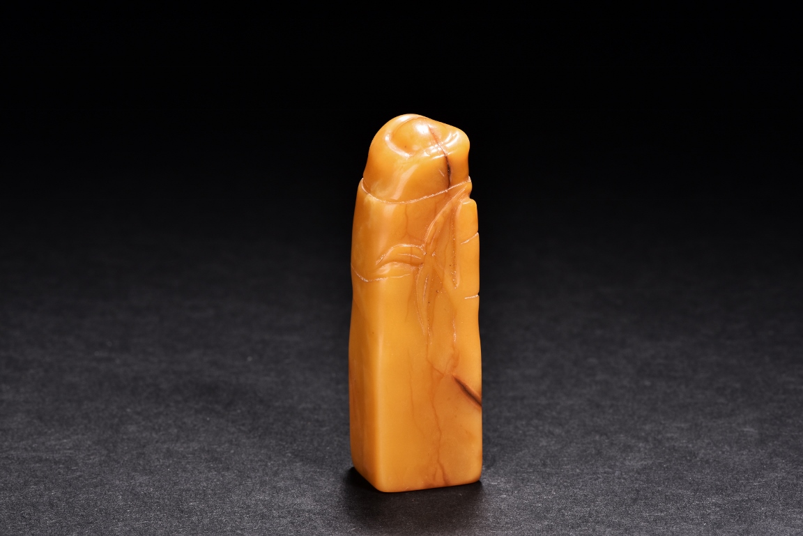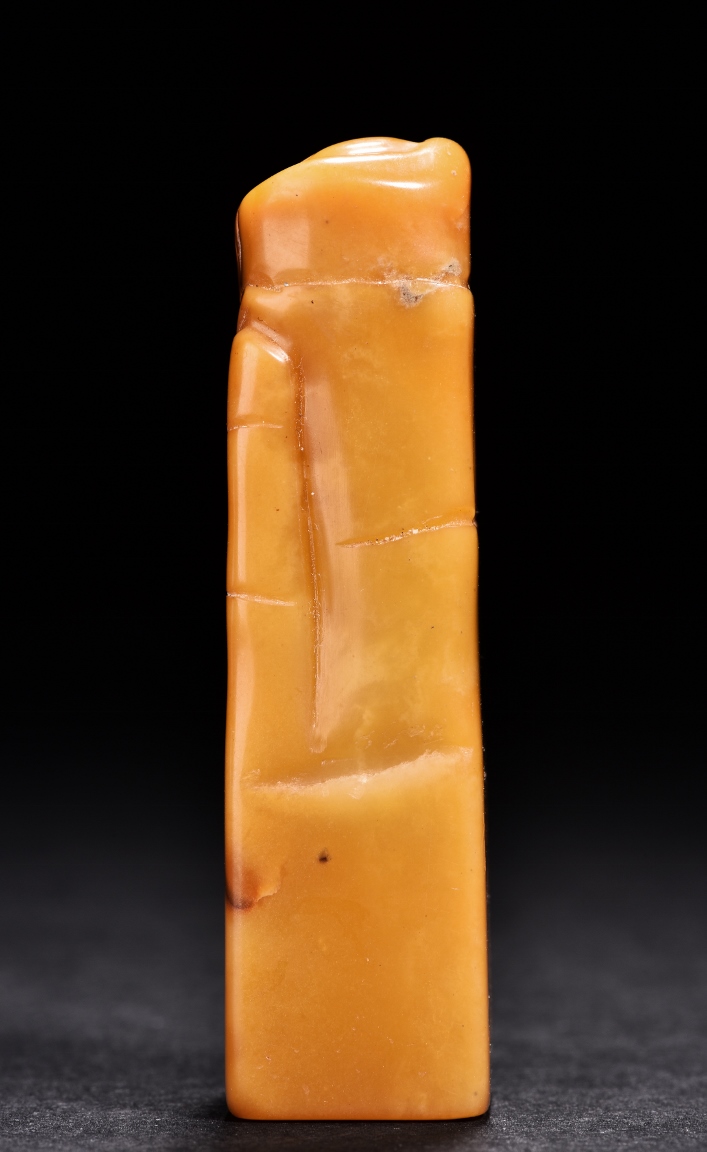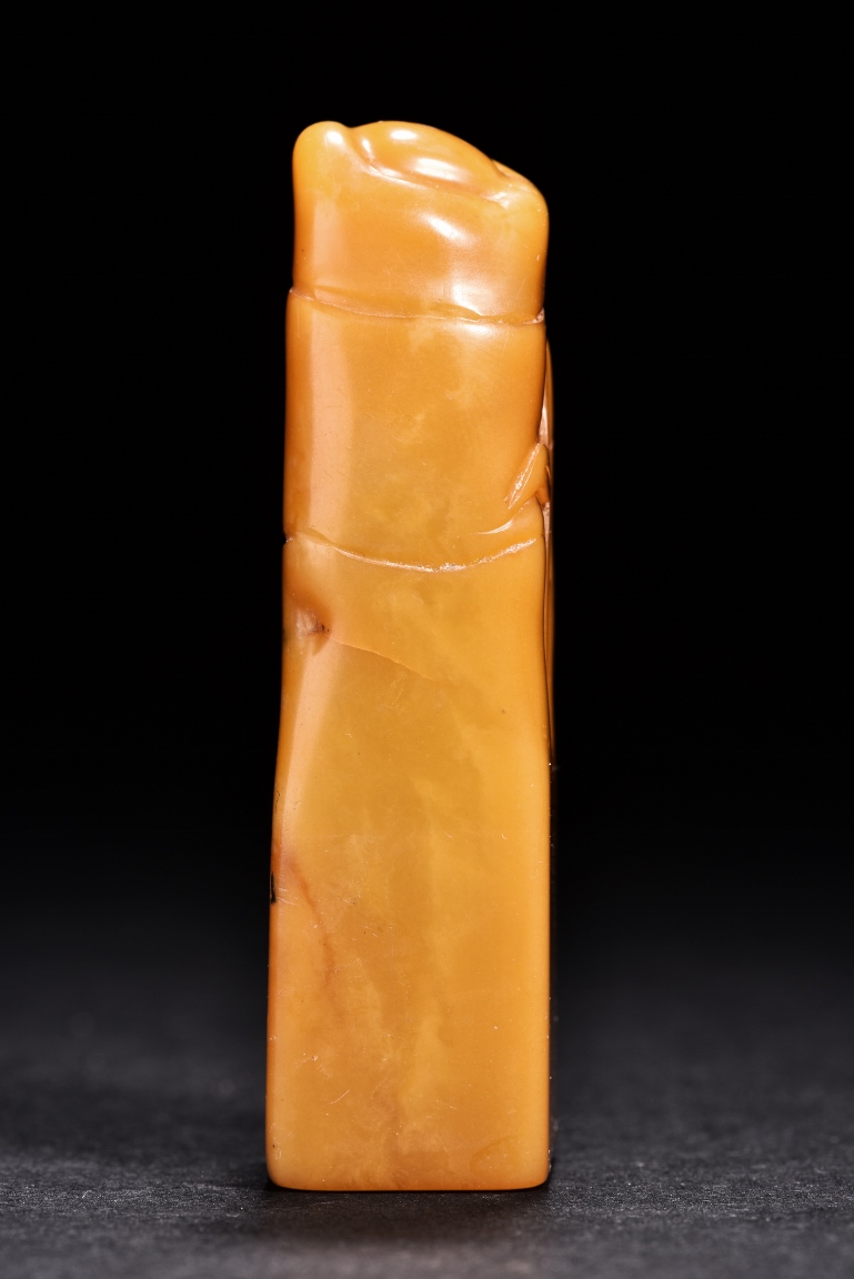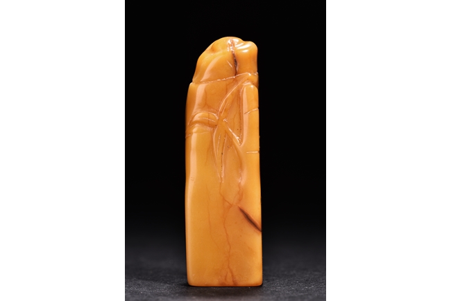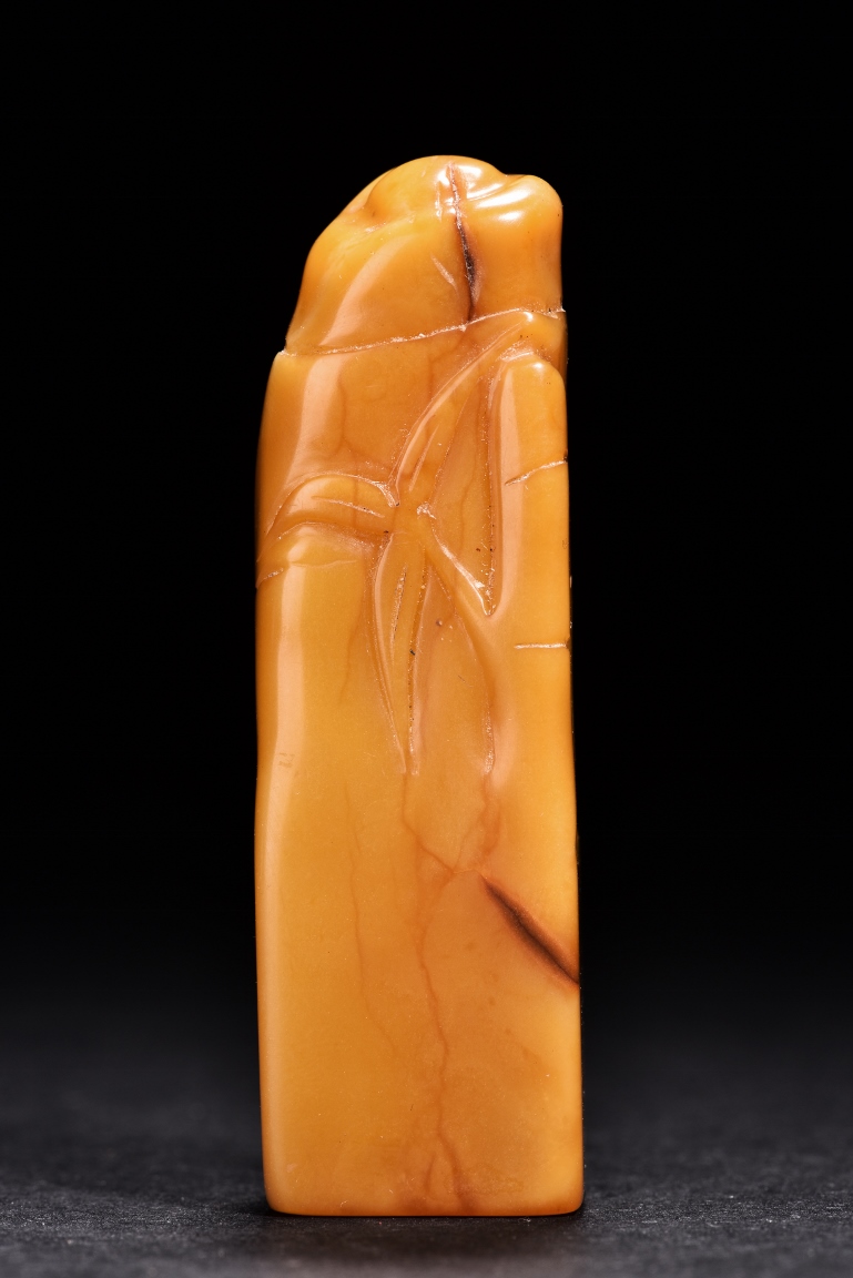 The seal is elegantly carved in shallow relief with a bamboo trunk and leafy branch, one side incised with inscriptions with author's signature 'Wang Da Xin'.