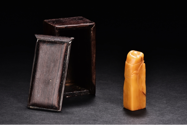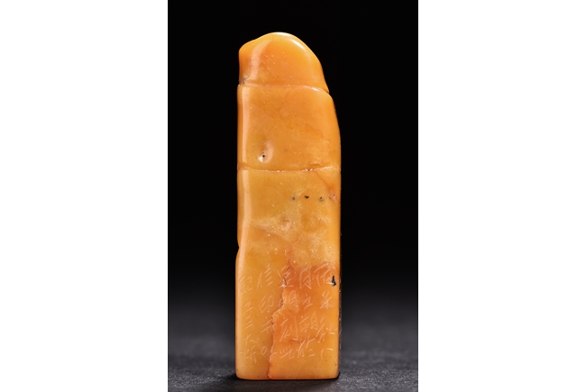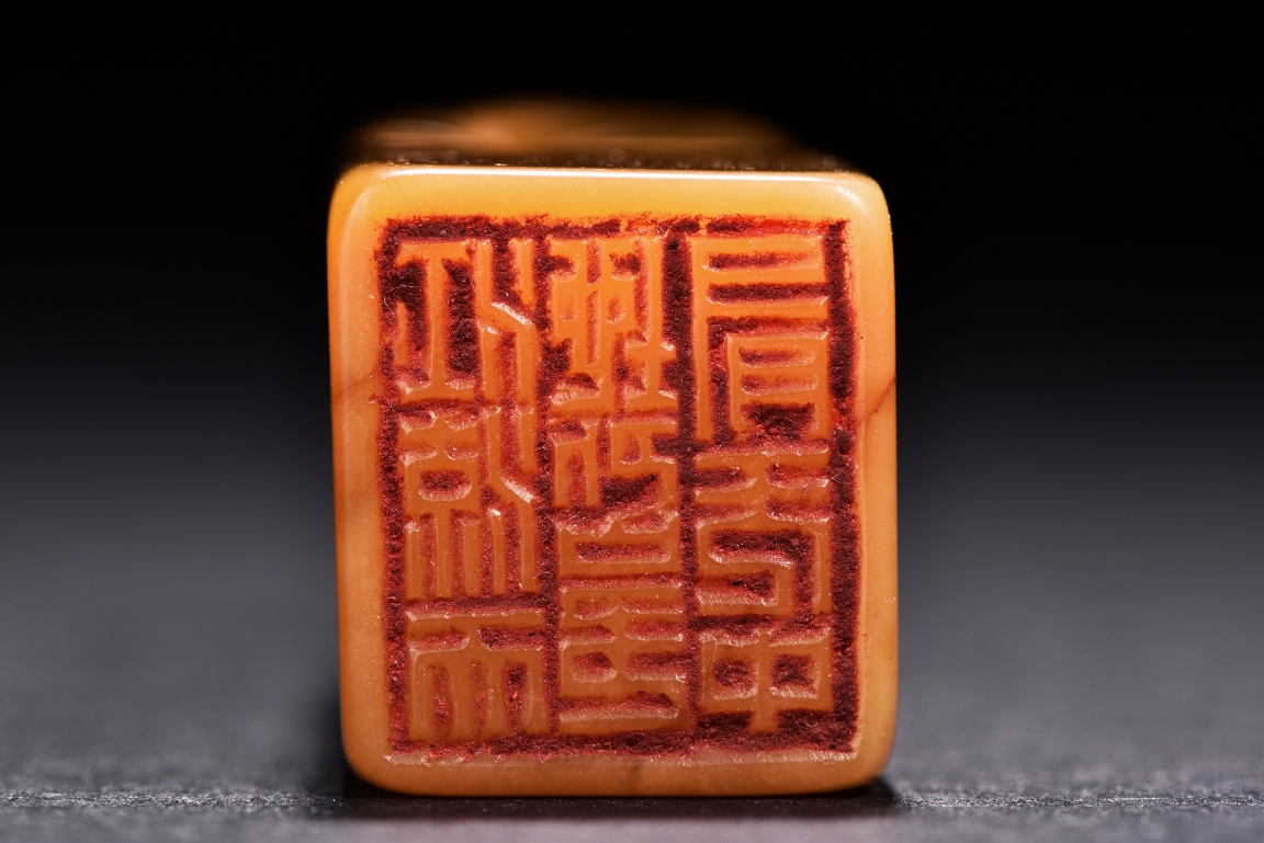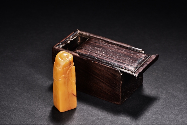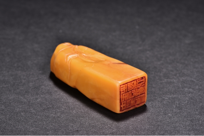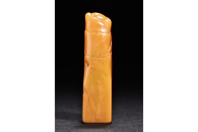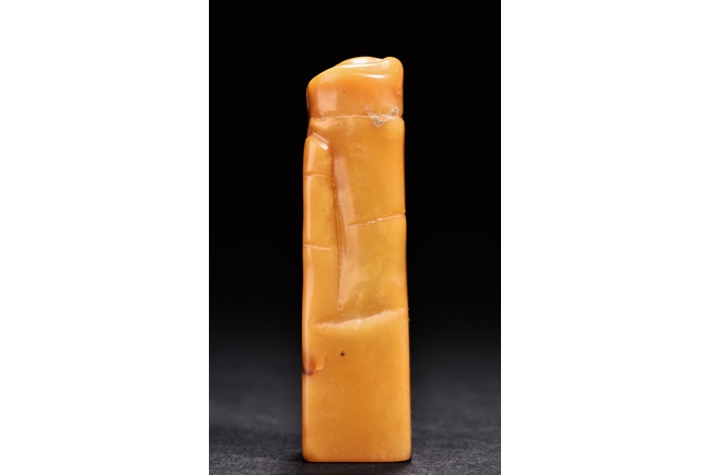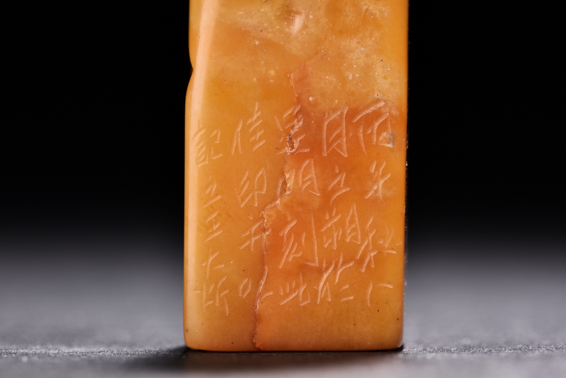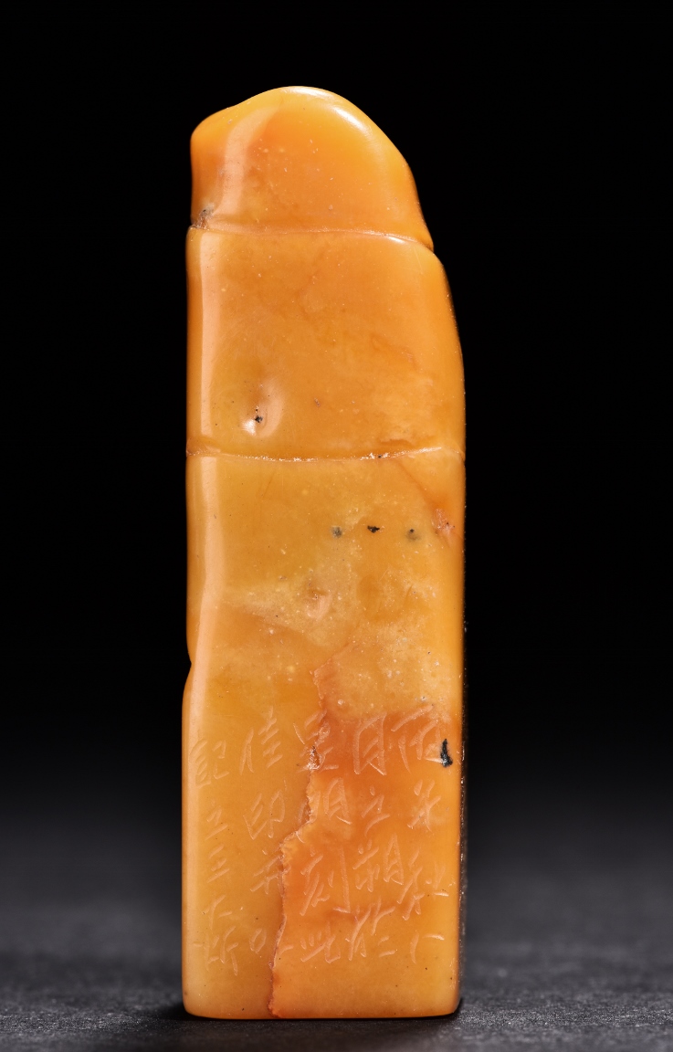 The seal is elegantly carved in shallow relief with a bamboo trunk and leafy branch, one side incised with inscriptions with author's signature 'Wang Da Xin'.