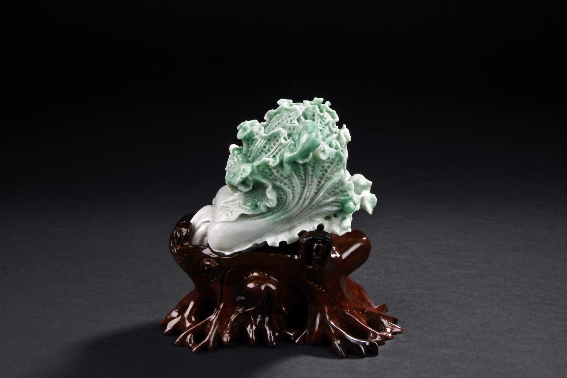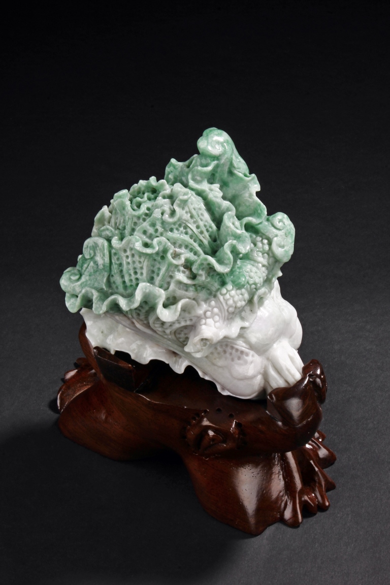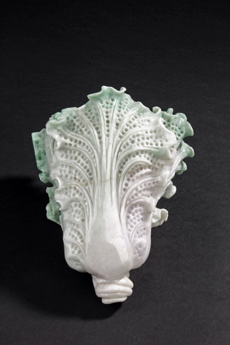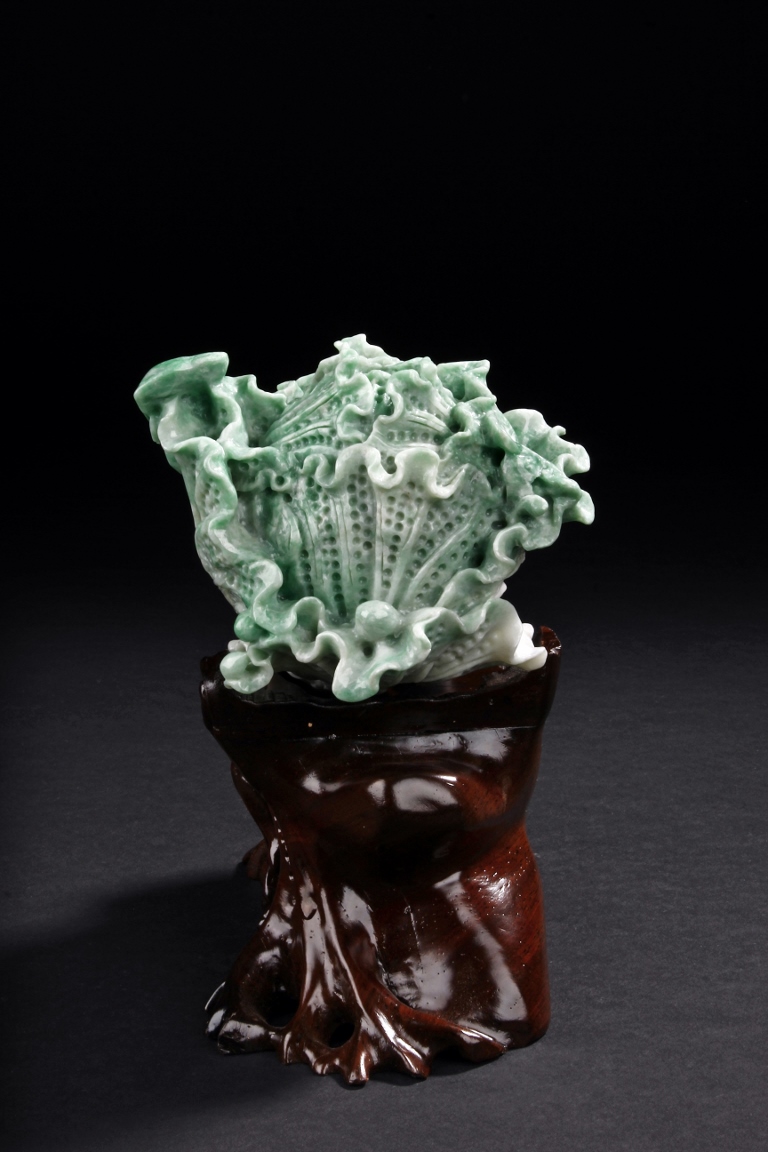 A CARVED JADEITE CABBAGE 翠玉白菜