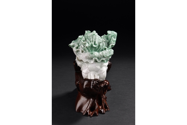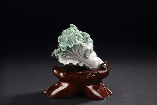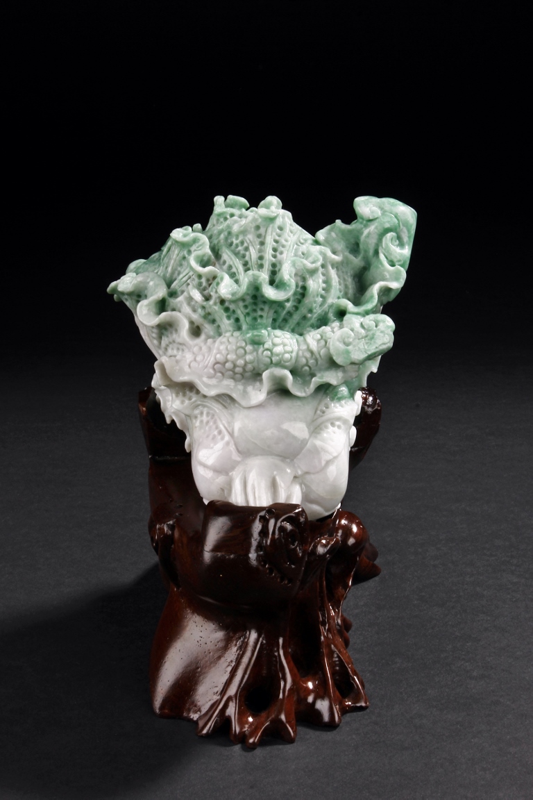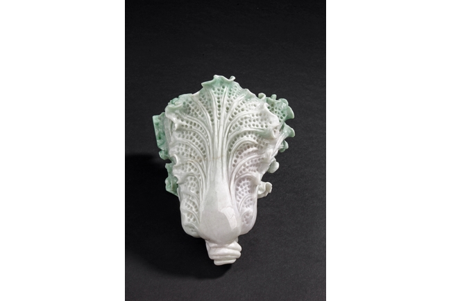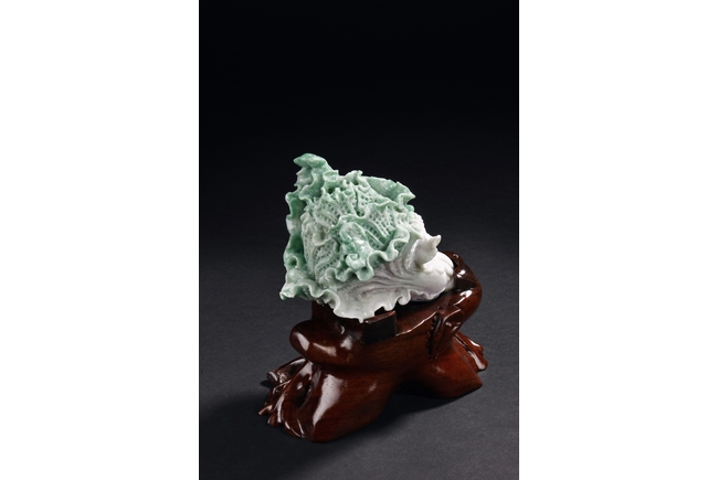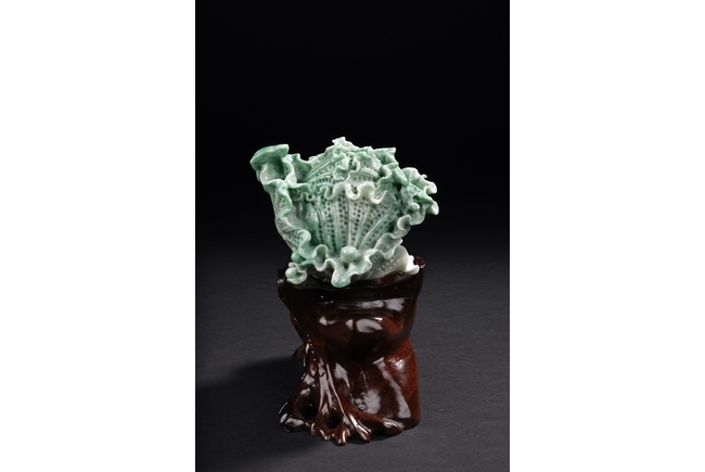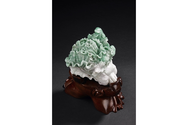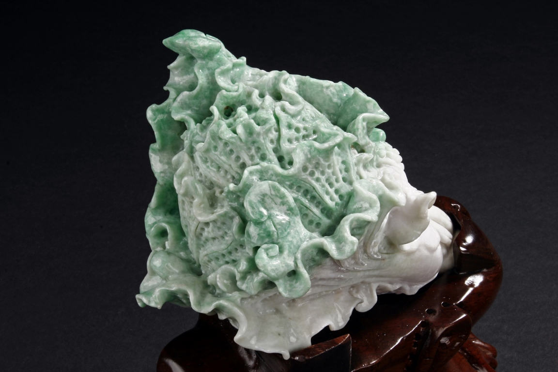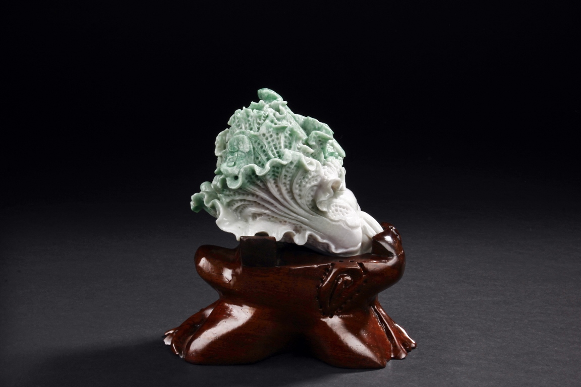 A CARVED JADEITE CABBAGE 翠玉白菜