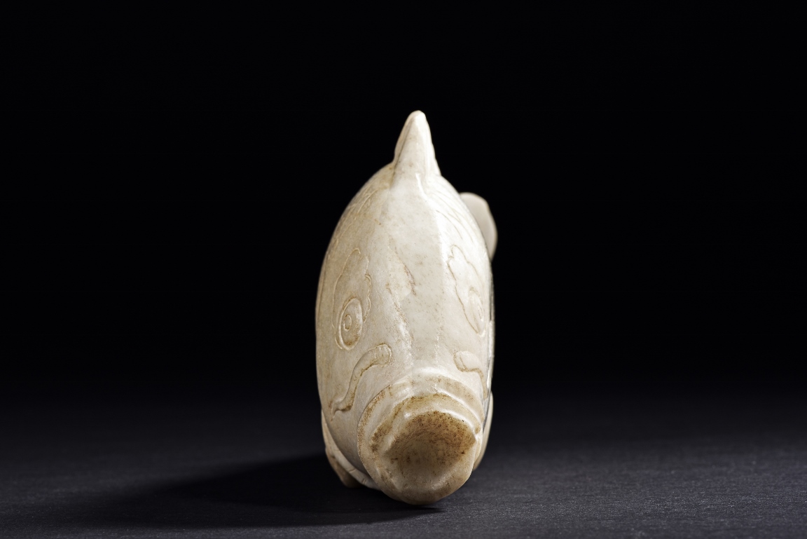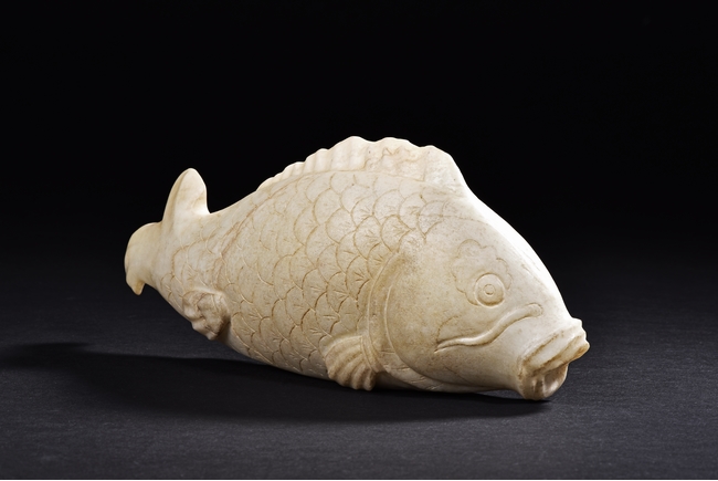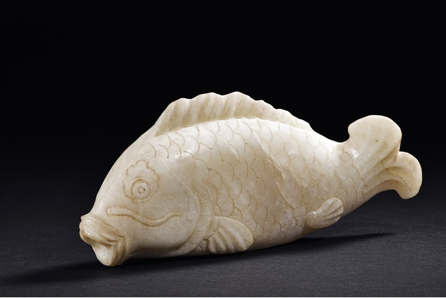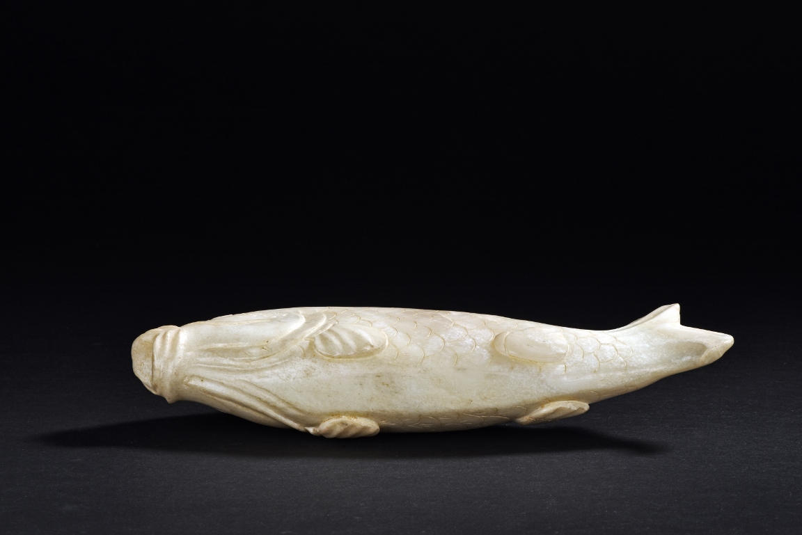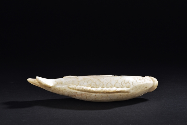 The marble is modelled as a fish flicking its tail slightly upwards, the body finely incised to represent scales.Qing Dynasty period.