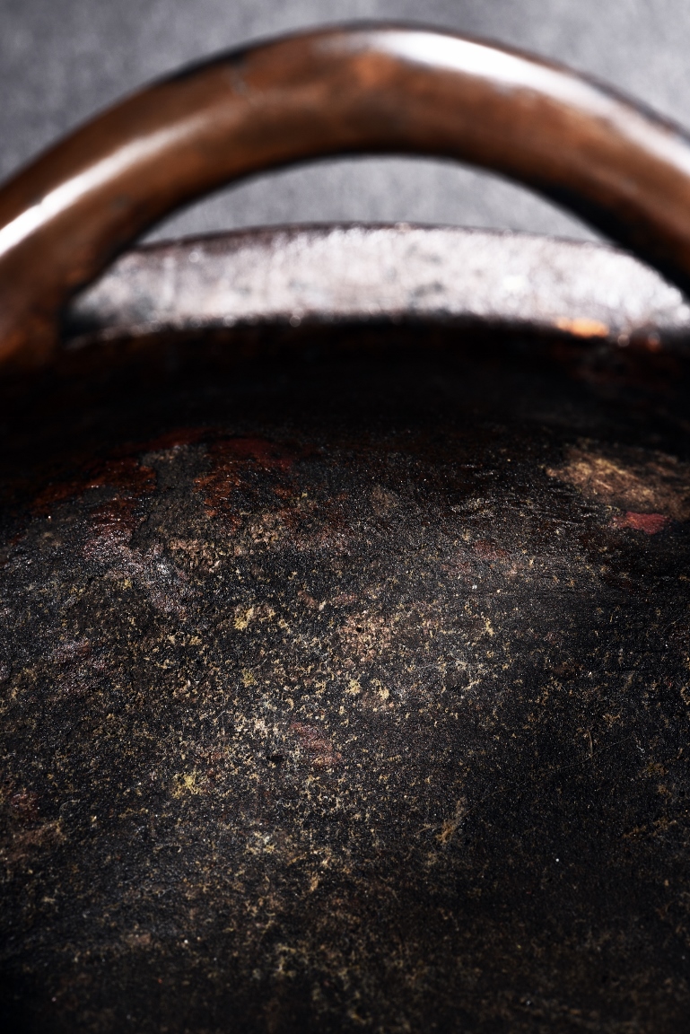 The compressed body supported on three short feet, the rim surmounted by two bail handles, the base bears two character 'Xuande' mark.