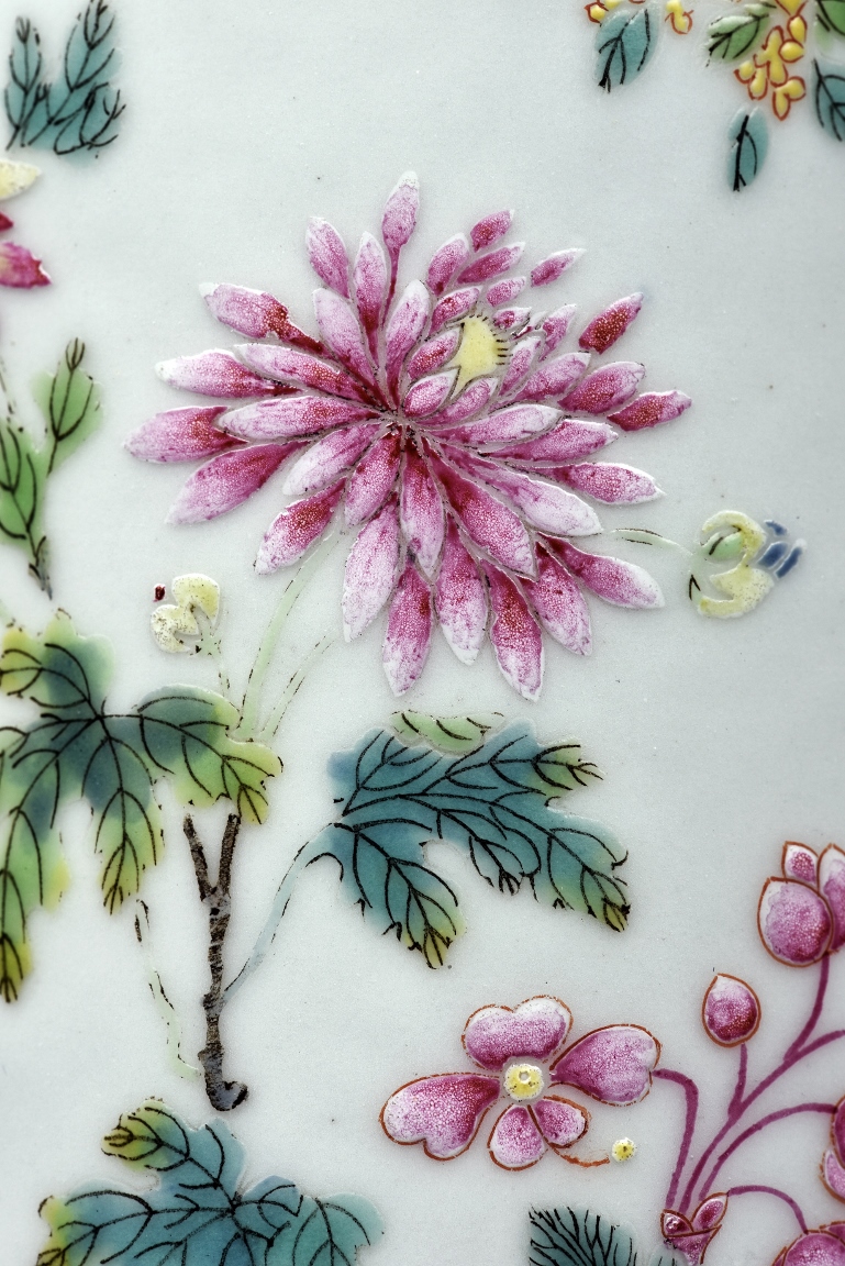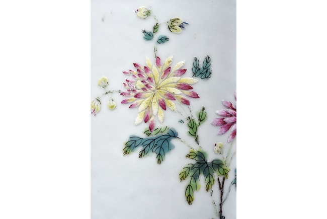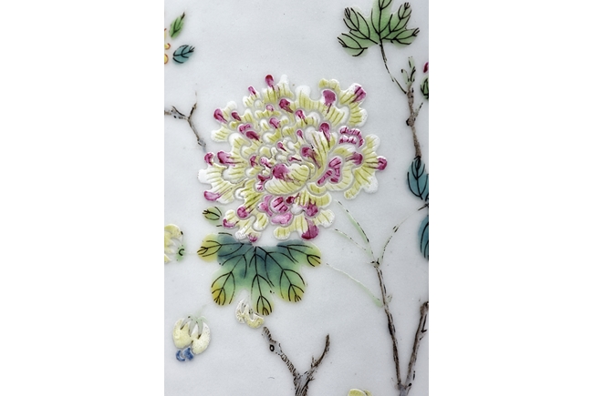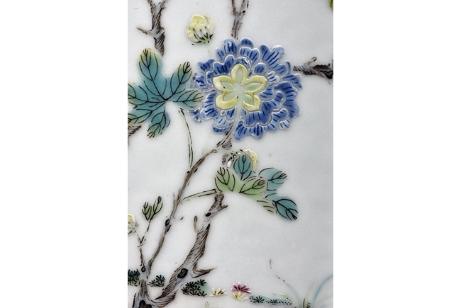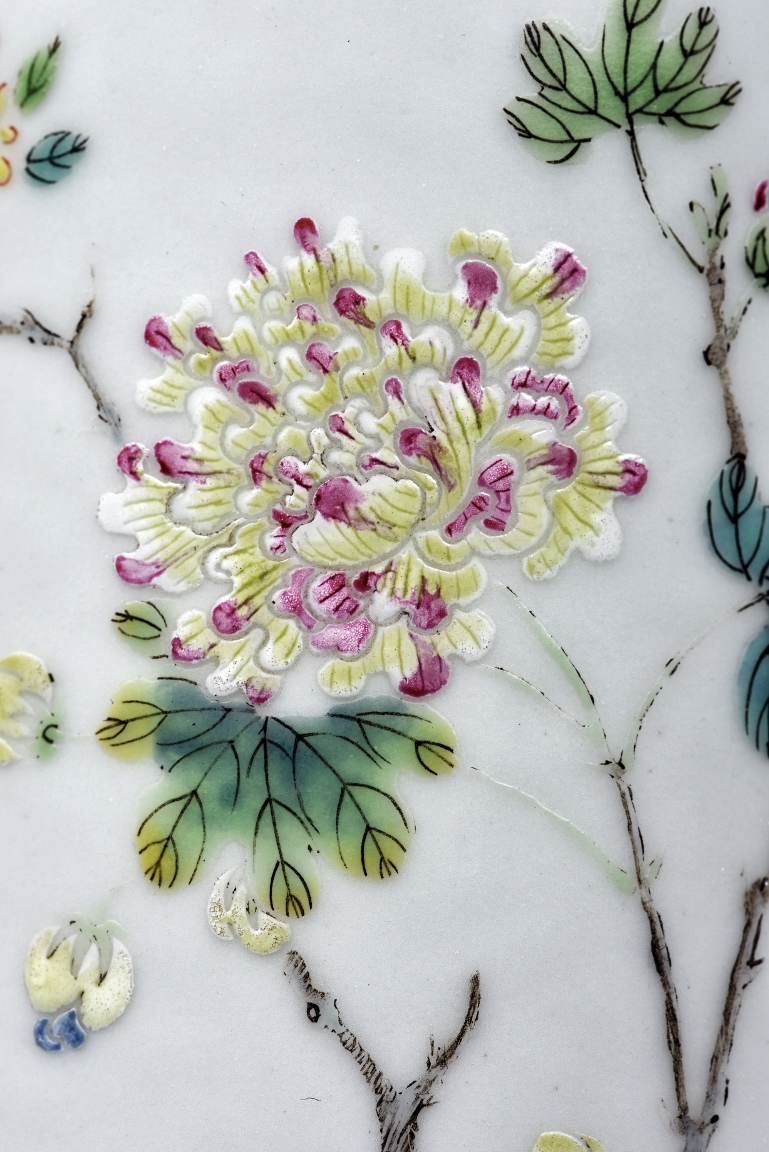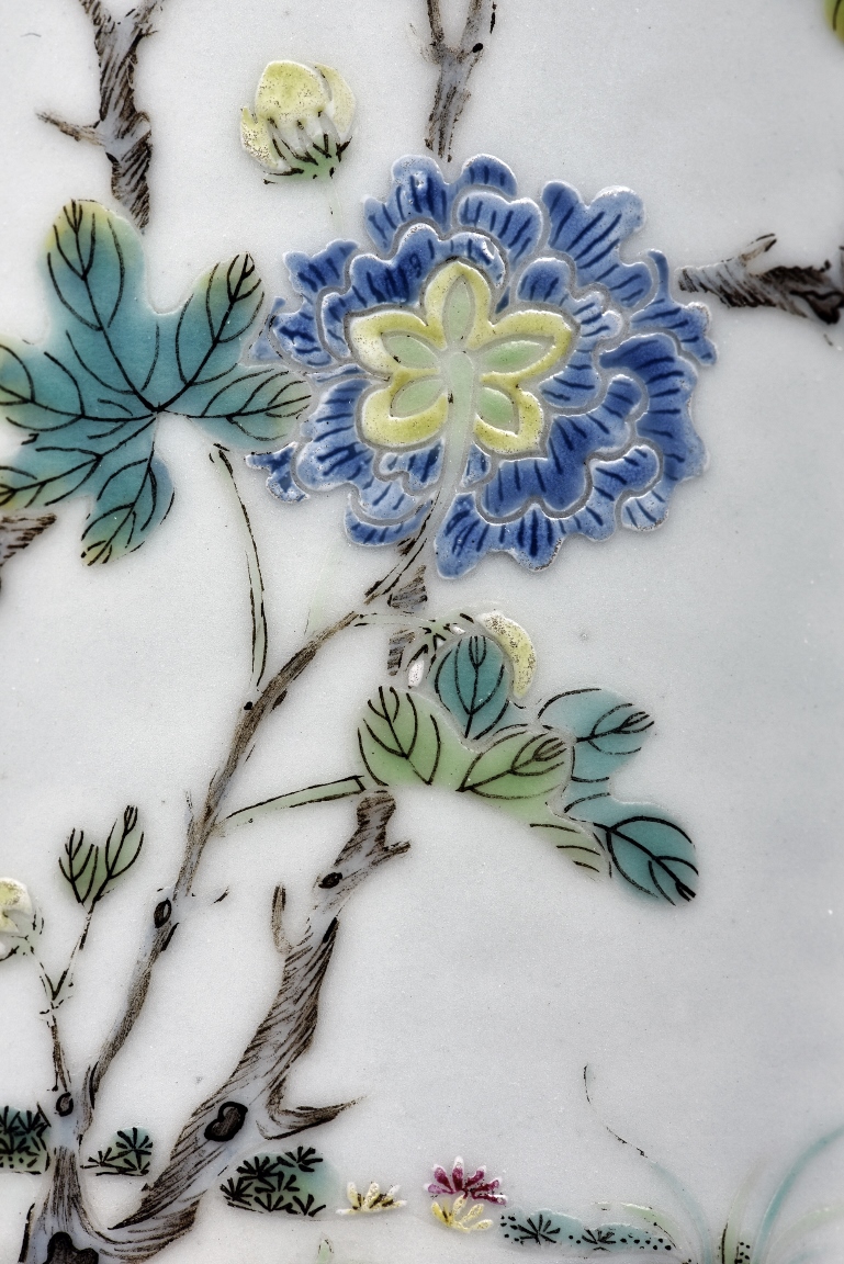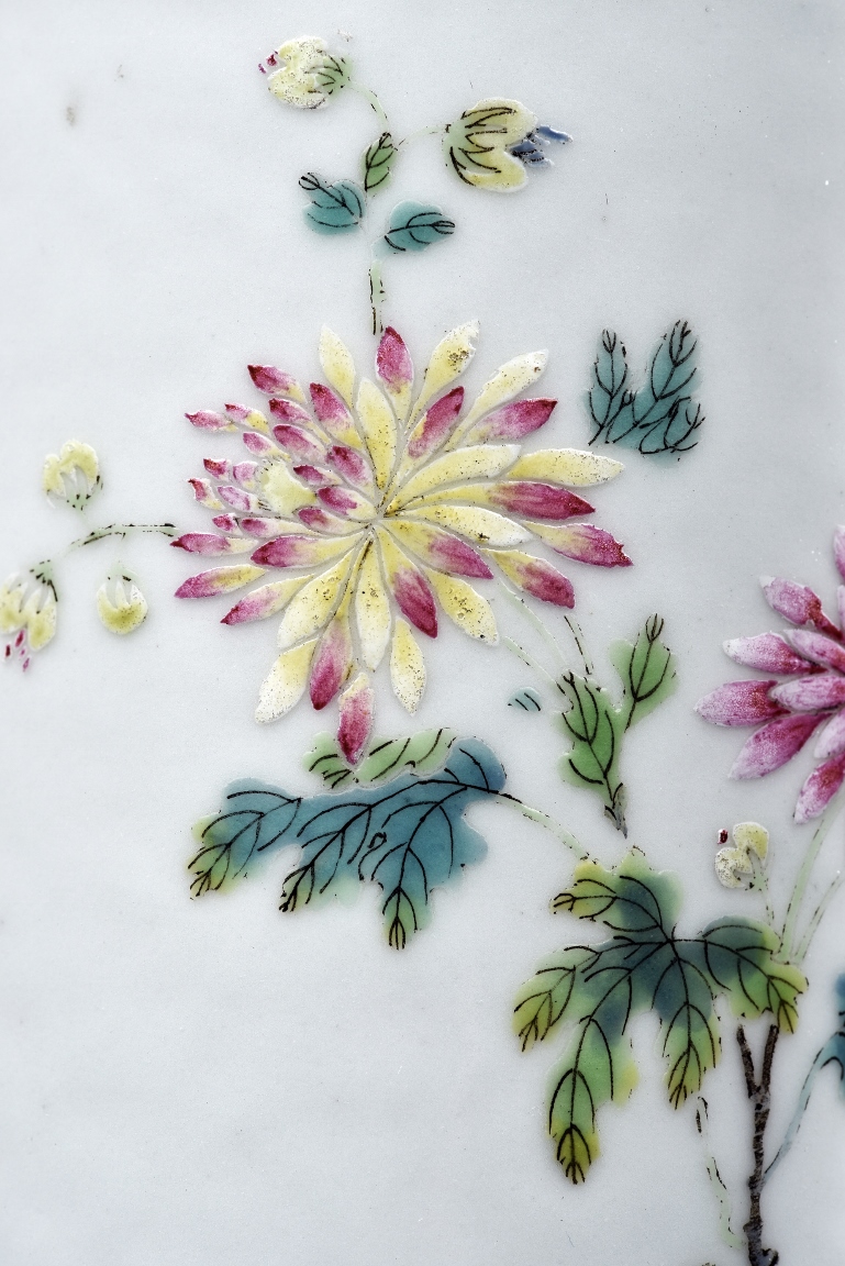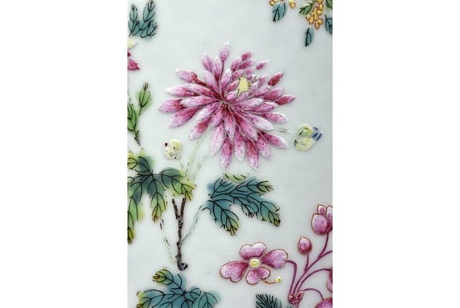 A small sized brush pot with enamel paintings of flowering branches, and the base bears a six characters "DAOGUANG" mark. Qing Dynasty period.