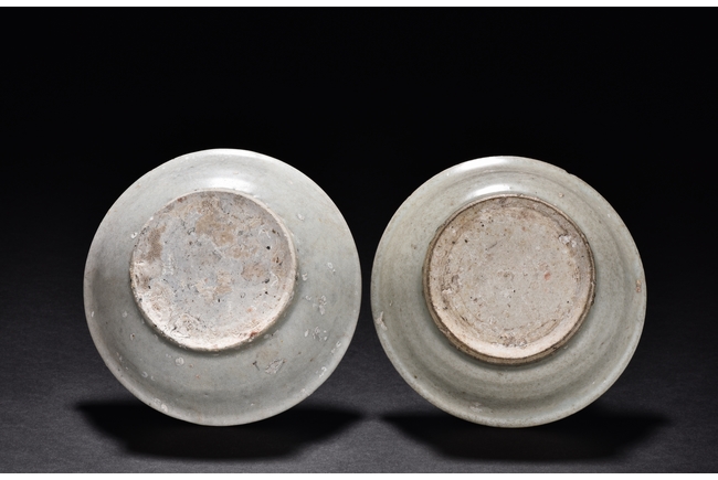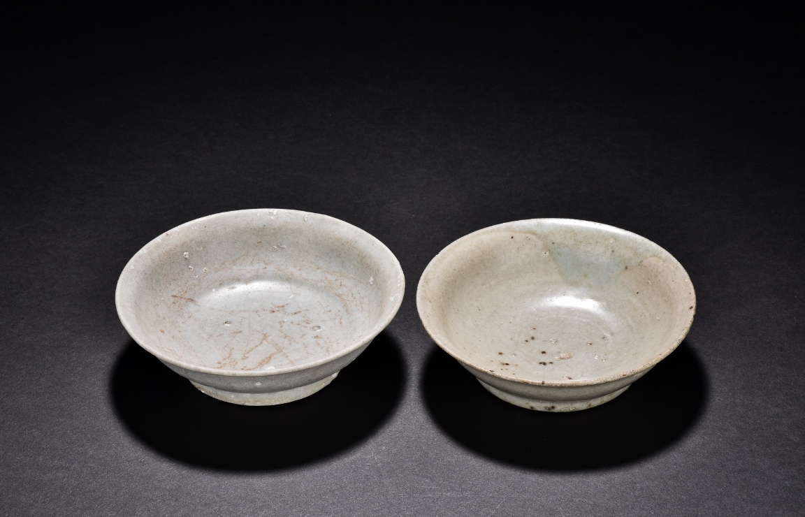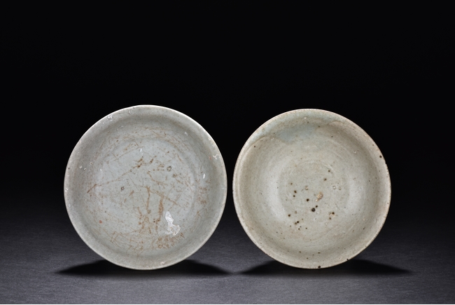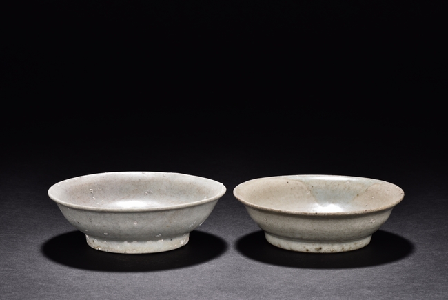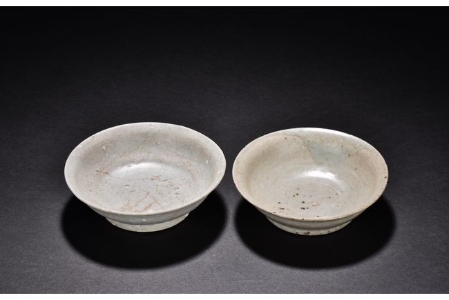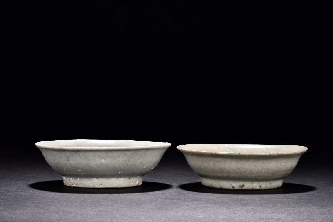 With flared rims and rounded sides, the exterior covered with celadon glaze. Ming Dynasty period.