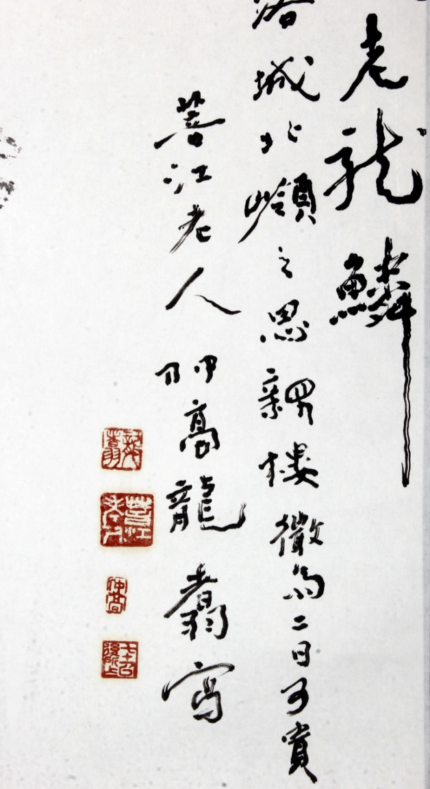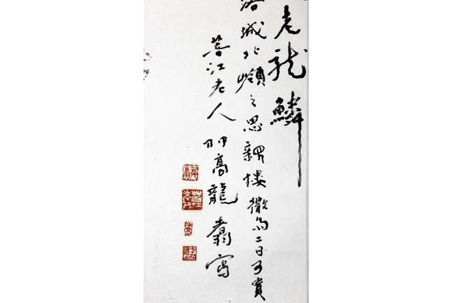 龍 ,字仲高,號菩江老人。1929年,生於江西省永新縣辛田村。1952年,香港光夏書院工管系肄業。1956年,台灣國立中興大學經濟系畢業。1984年,國立師範大學中等教師研究所卒業1986年,新竹香山高級中學教師退休,教師生涯30年。來美定居。1999年,被選入世界華人書畫家作品集。並創辦中華書畫研究院,分書法繪畫兩組。2000年,被邀至北京參加“百位華人書畫家”共創巨幅大畫,以慶祝澳門迴歸。2002年,北京“情系西部國際書畫攝影大展”贈以“特邀榮譽”獎。並書法對聯已付,花卉“秋酣”乙副列入該集。又贈“特別榮譽”證書。
