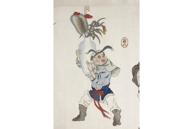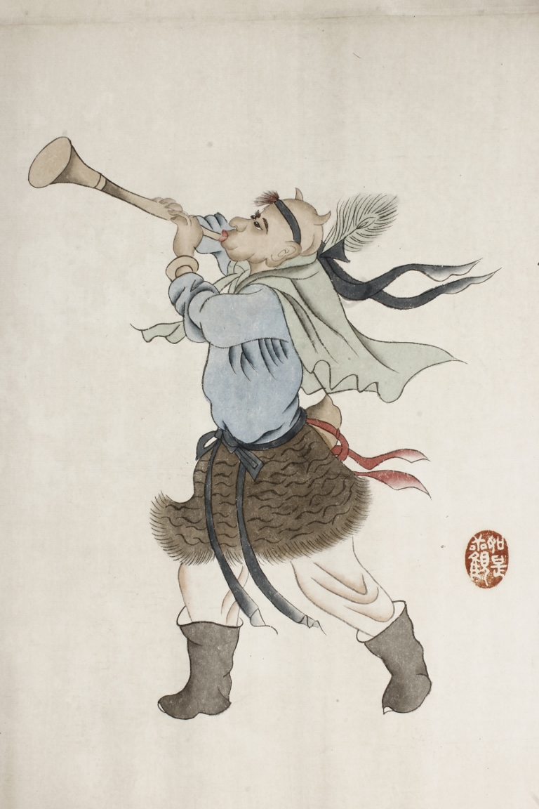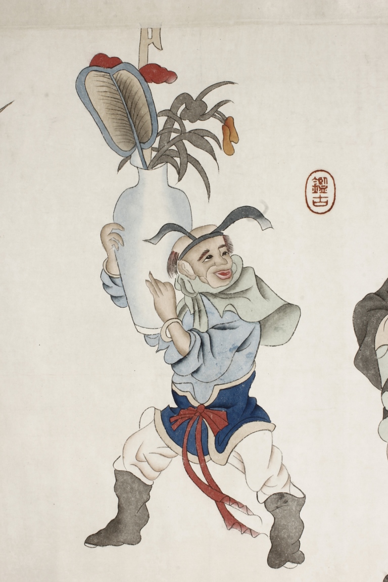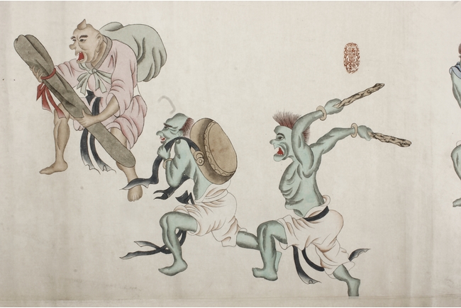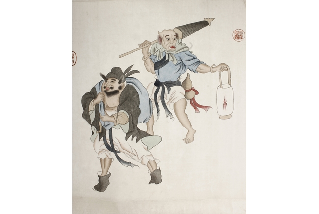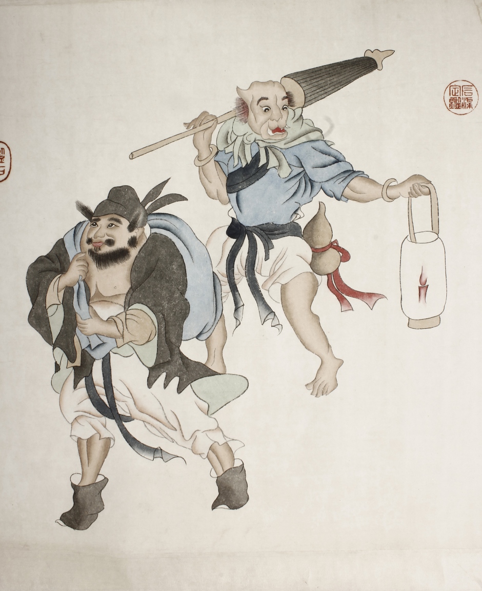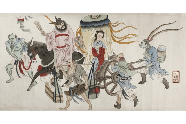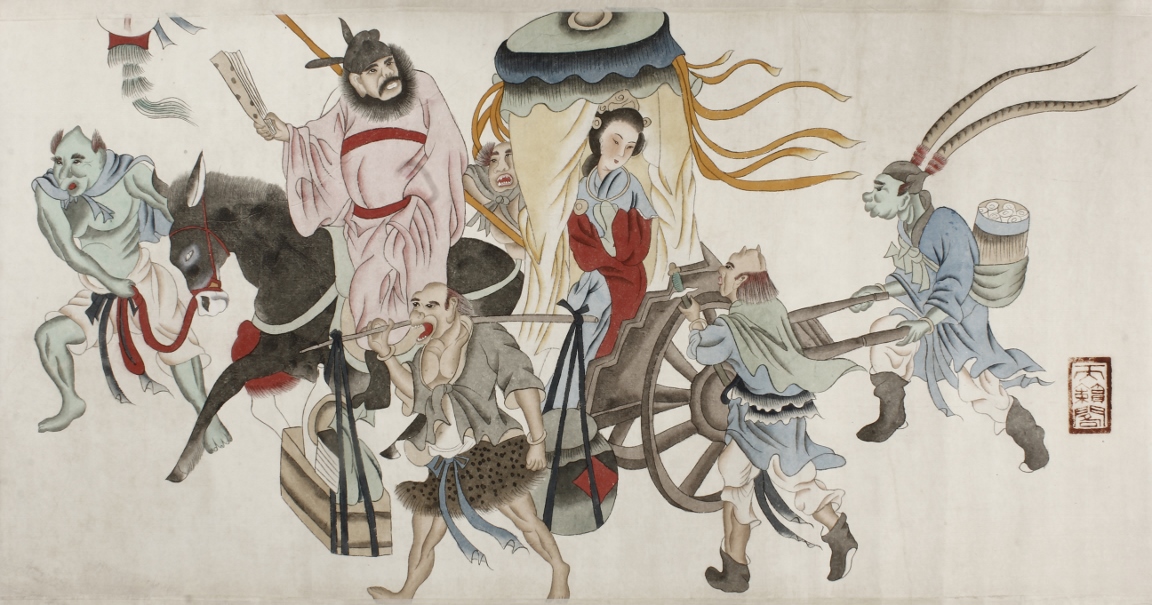 Ink and color on paper. The painting depicts the marriage of Zhongkui. Attributed to Liu Songnian.