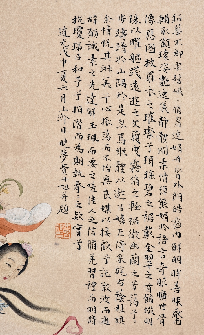 題識:道光戌申夏六月上澣日曉夢費丹旭並題