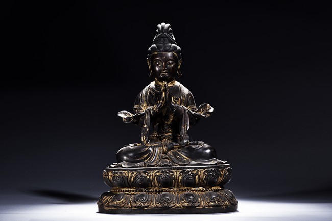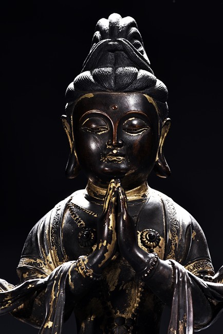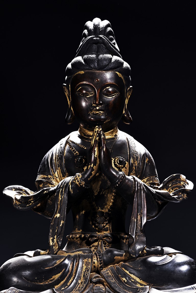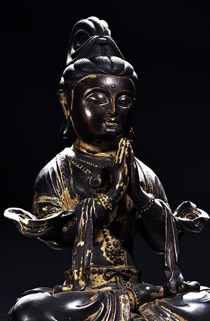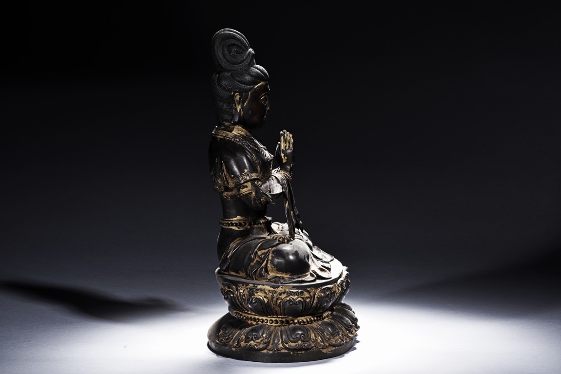 A PARCEL GILT BRONZE BODHISATTVA    十九世纪 铜貼金菩萨像