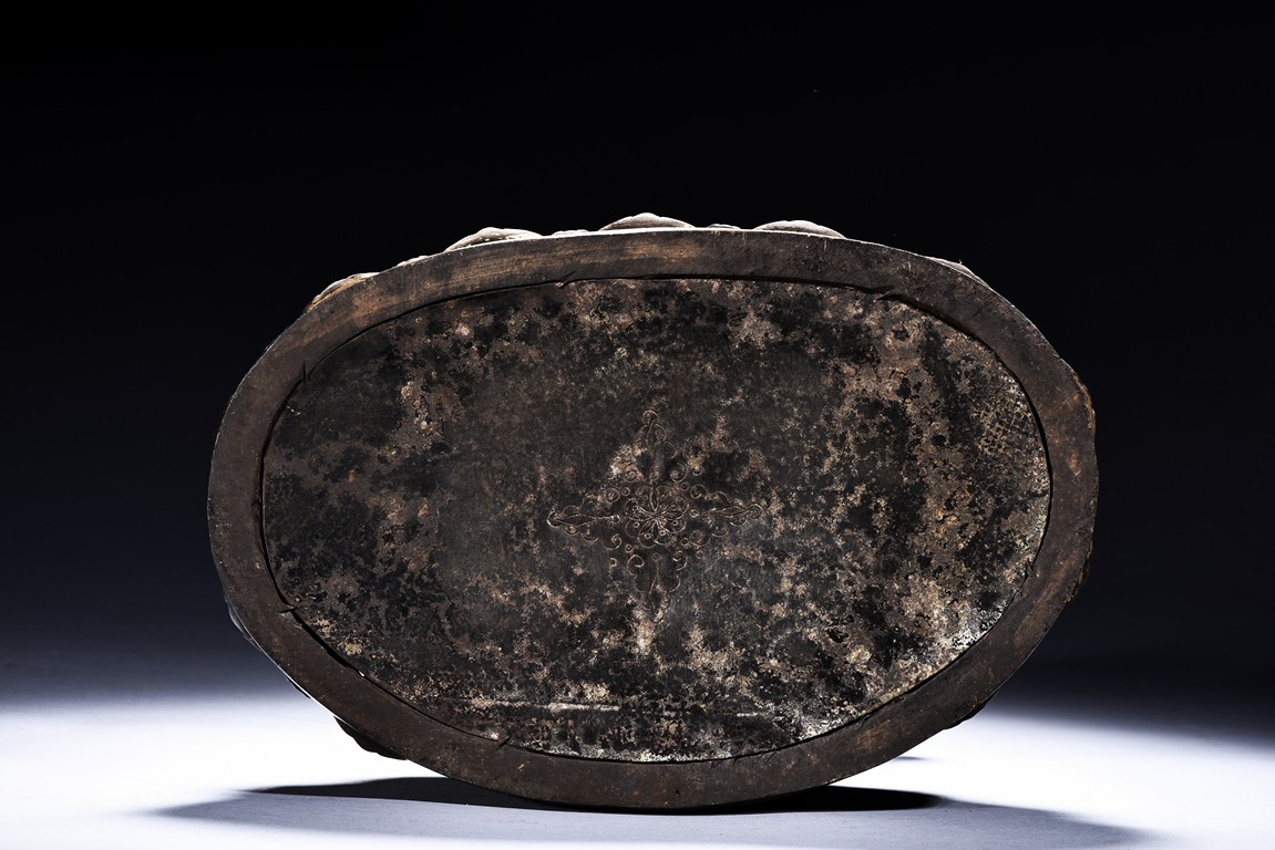 The bodhisattva is carved seated on double lotus throne, the two hands in praṇāmāsana, the face with serene expression. 19th Century.