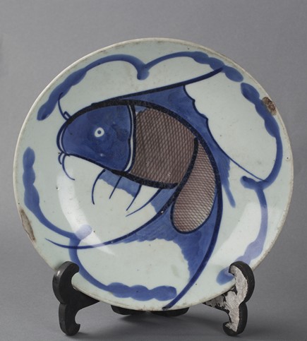 A SET OF FOUR BLUE AND WHITE'CARP' DISHES    民國早期 魚盤 共四件