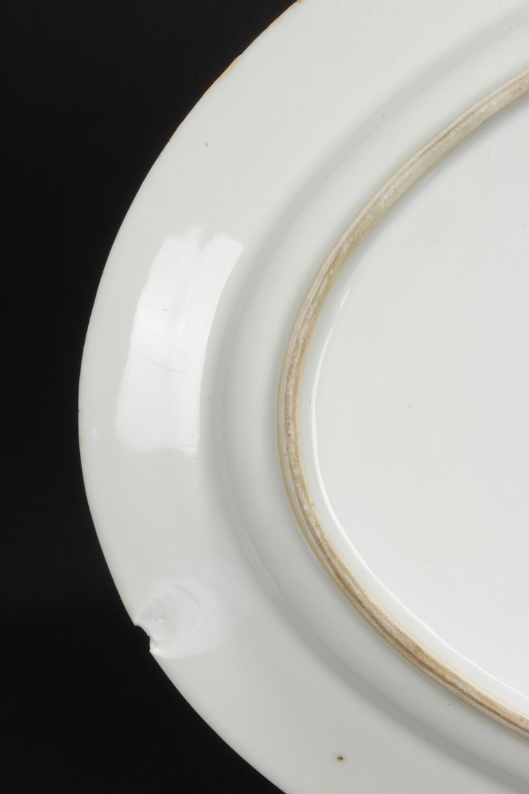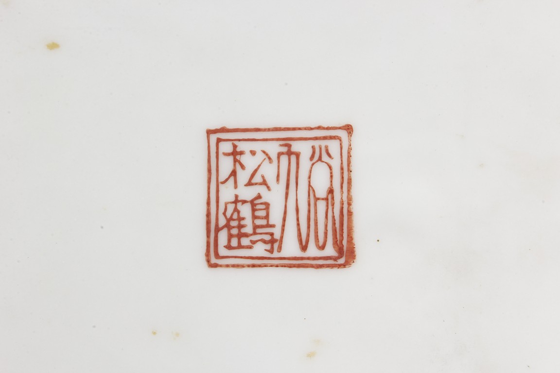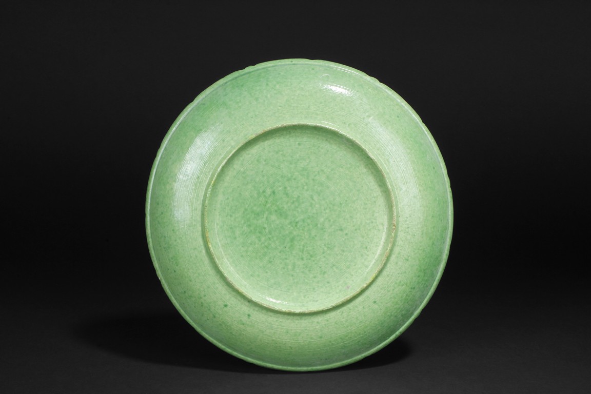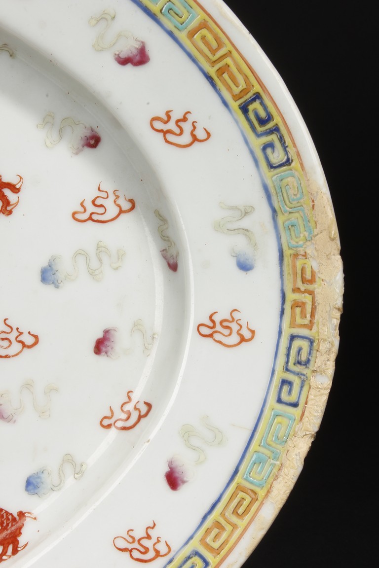 A group of porcelain dish of oval, square and circular shape, one dish with famille rose dragon and phoenix, one dish with celadon glaze, and the one dish with birds over underglazed green.