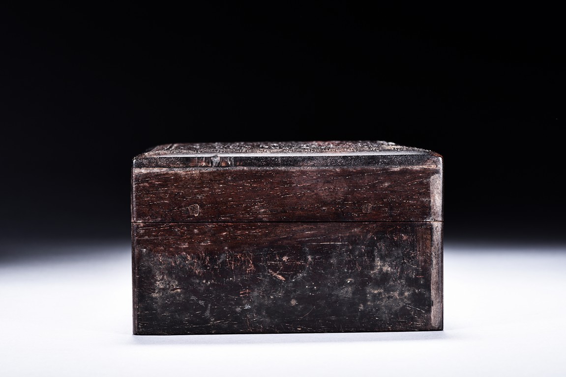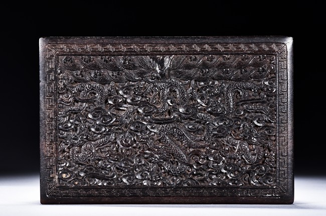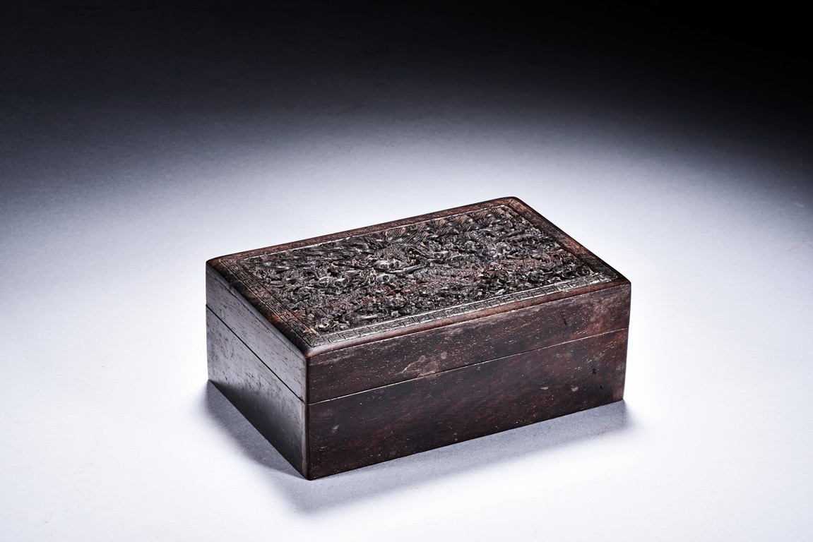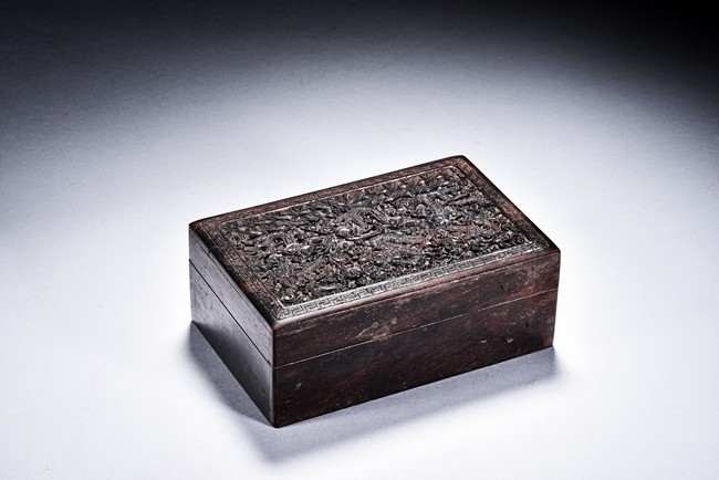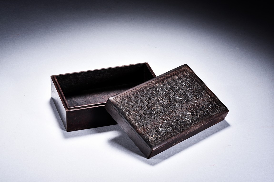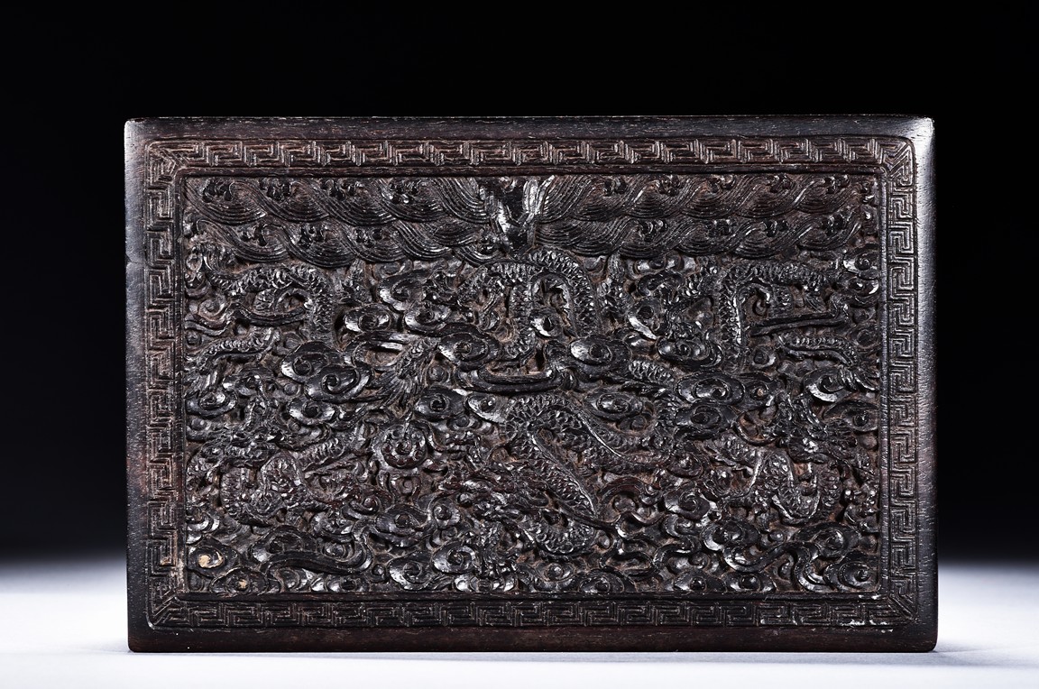 A ZITAN CARVED DRAGON BOX 清 紫檀雲龍紋木盒