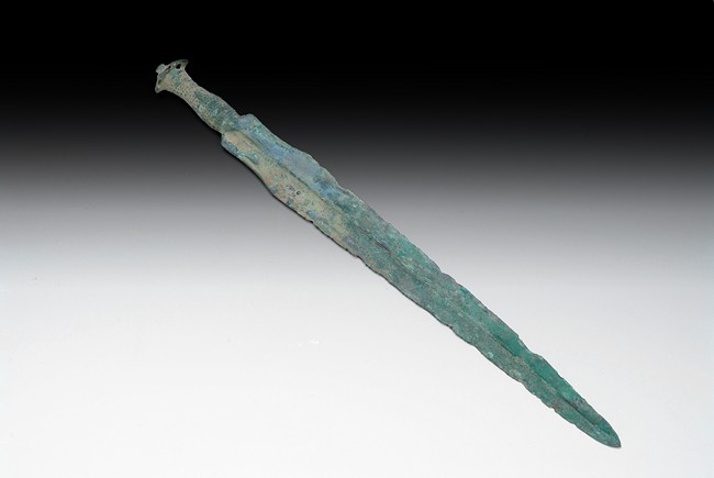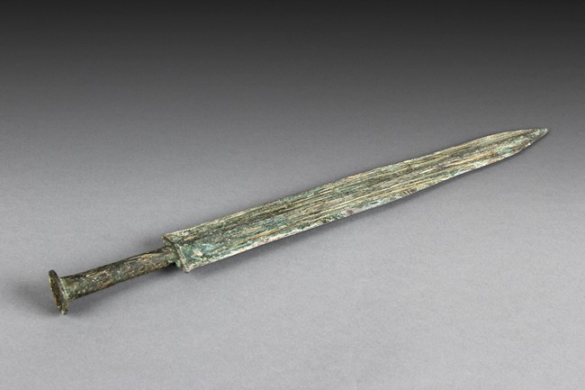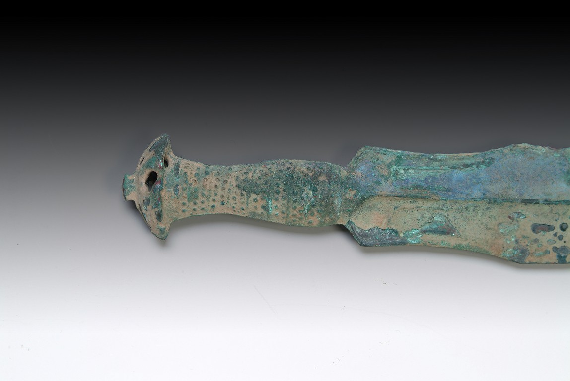 The group includes four archaic swords, two swords with round hilt and two circular rings, one sword with just round hilt, and one sword with bump surface hilt. Three swords with small sword guard. All with rust and discoloration. From Warring State period to Han Dynasty period.