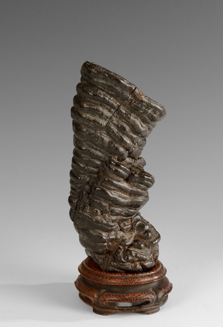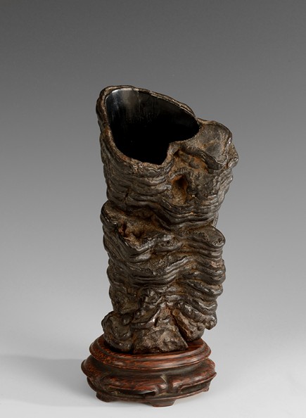 A Lingzhi fungus brush pot with both the interior and the bottom lacquered in a conical shape, and bottom bears the signature'Zhou Li'. Qing Dynasty period.