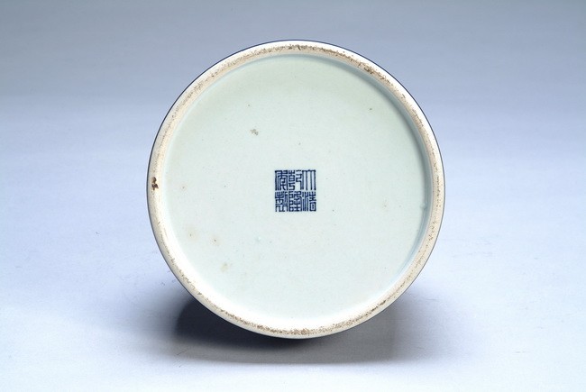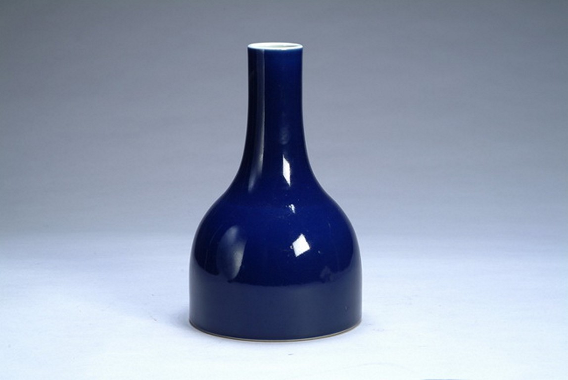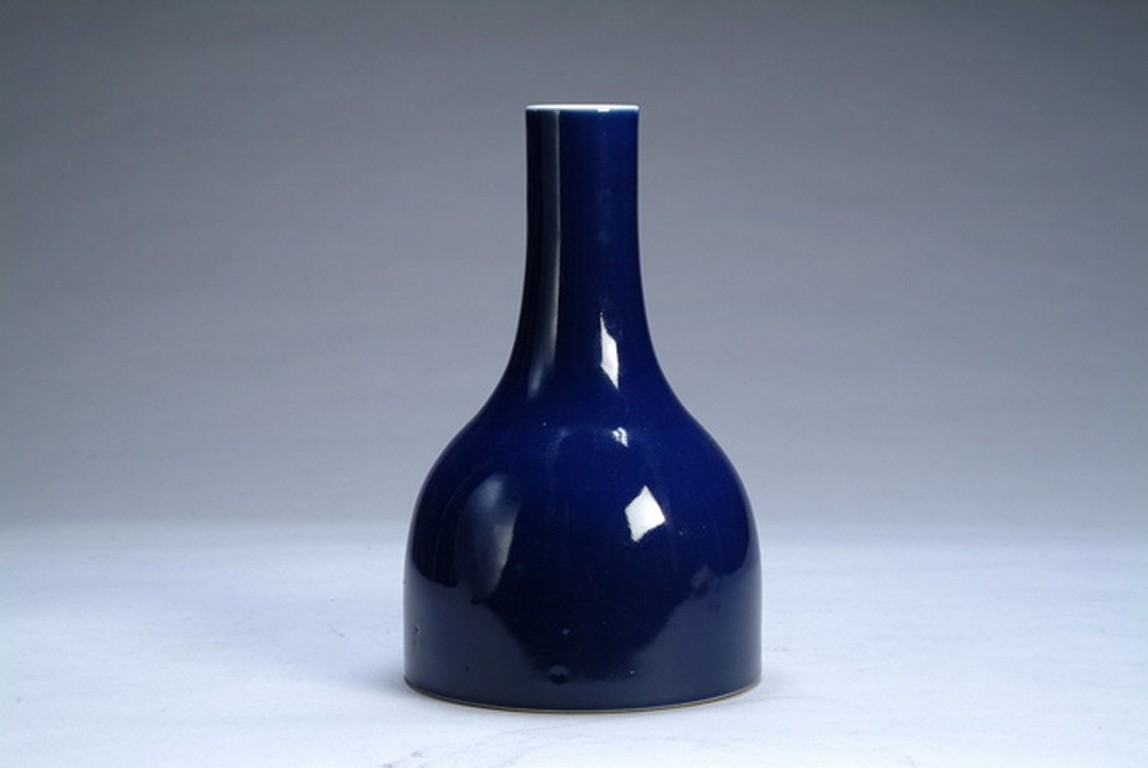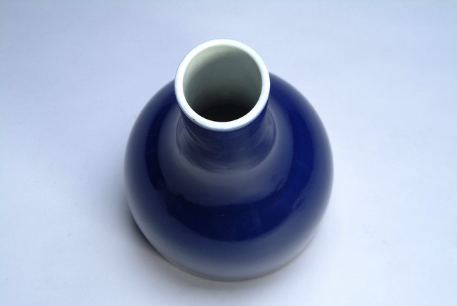 Finely potted exterior, entirely glazed in elegant blue, the bottom bears six character Qianlong mark.