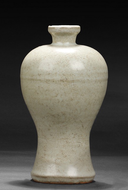 The body tapering from high rounded shoulder to the gently spreading foot, covered on the exterior with crackle patterns over white glaze, the bottom foot ring unglazed. Ming Dynasty period.