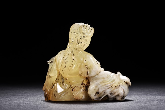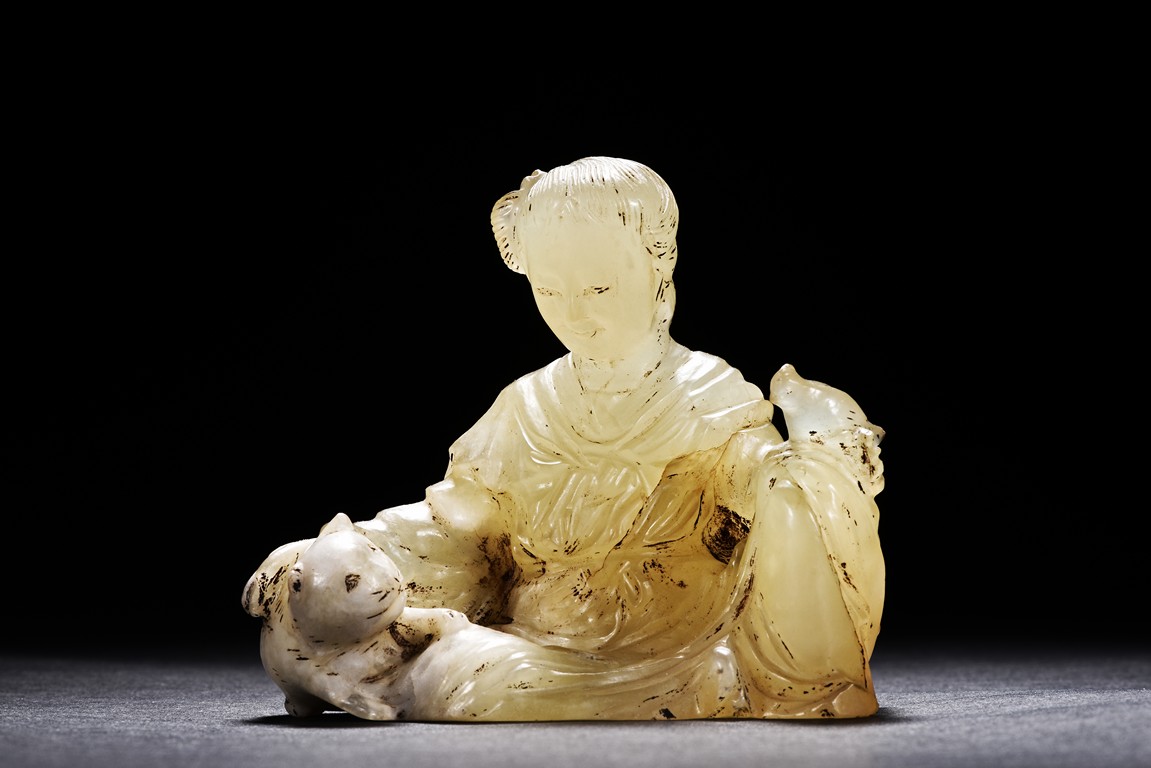 A JADE CARVED FIGURAL GROUP 清 玉雕人物与猫擺件