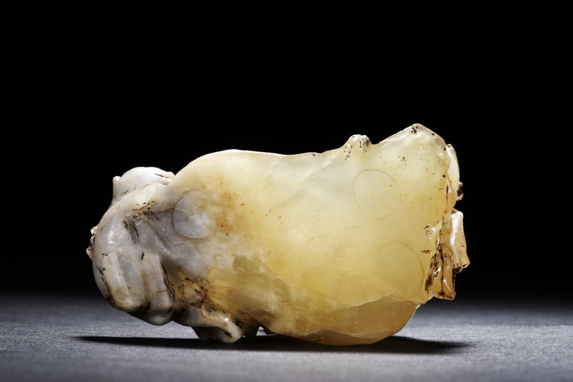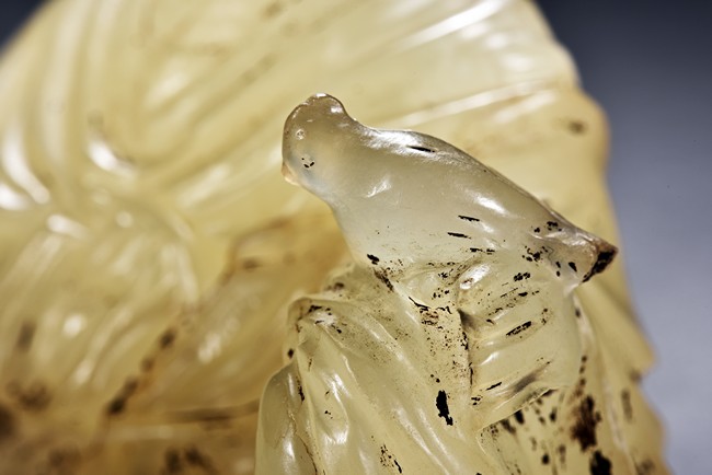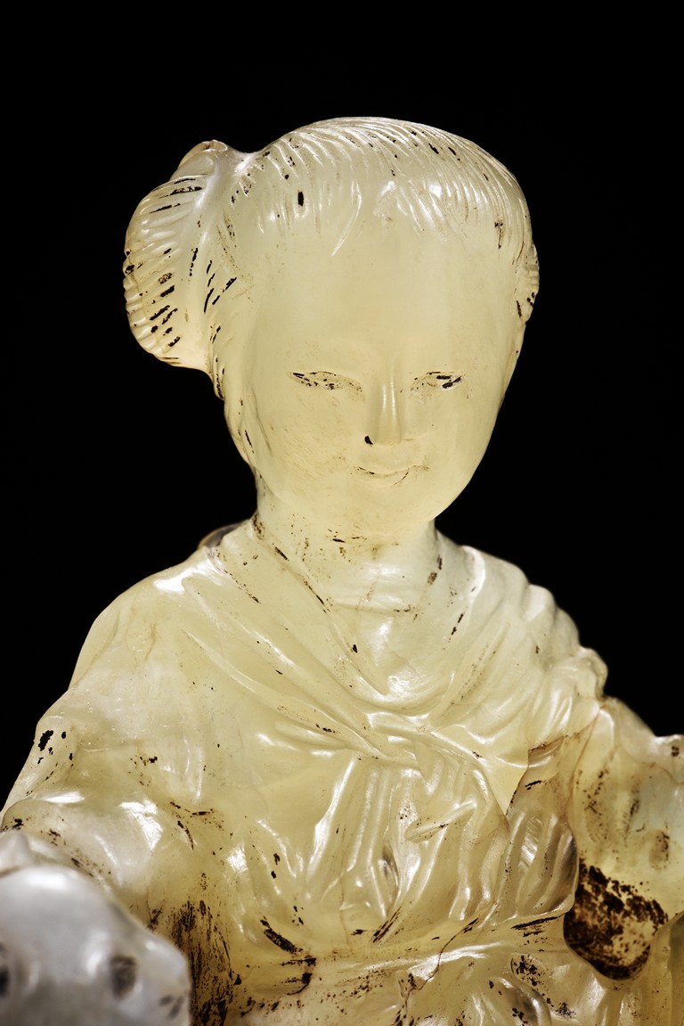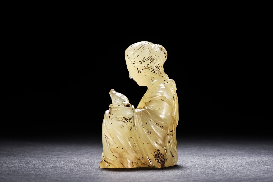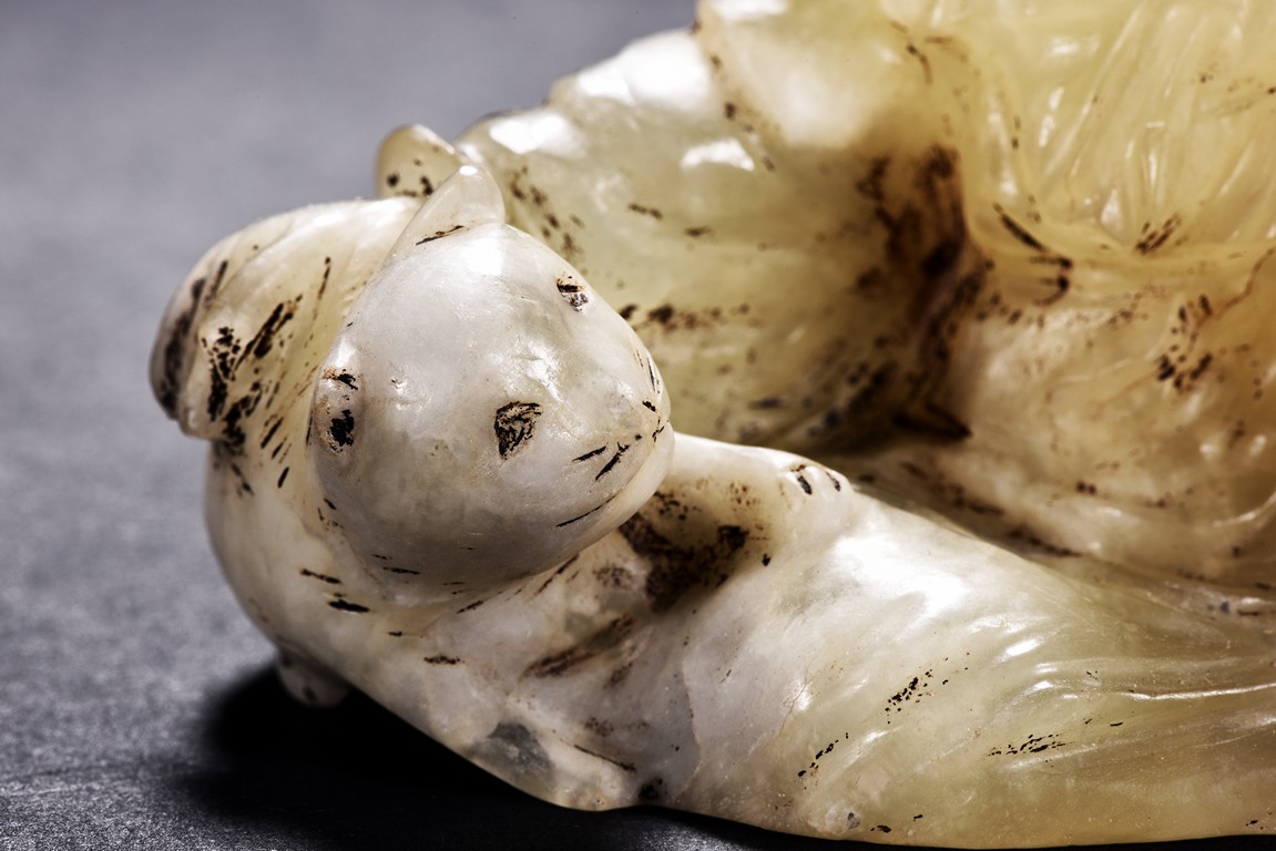 The group is carved with a beauty and cat out of translucent jade.